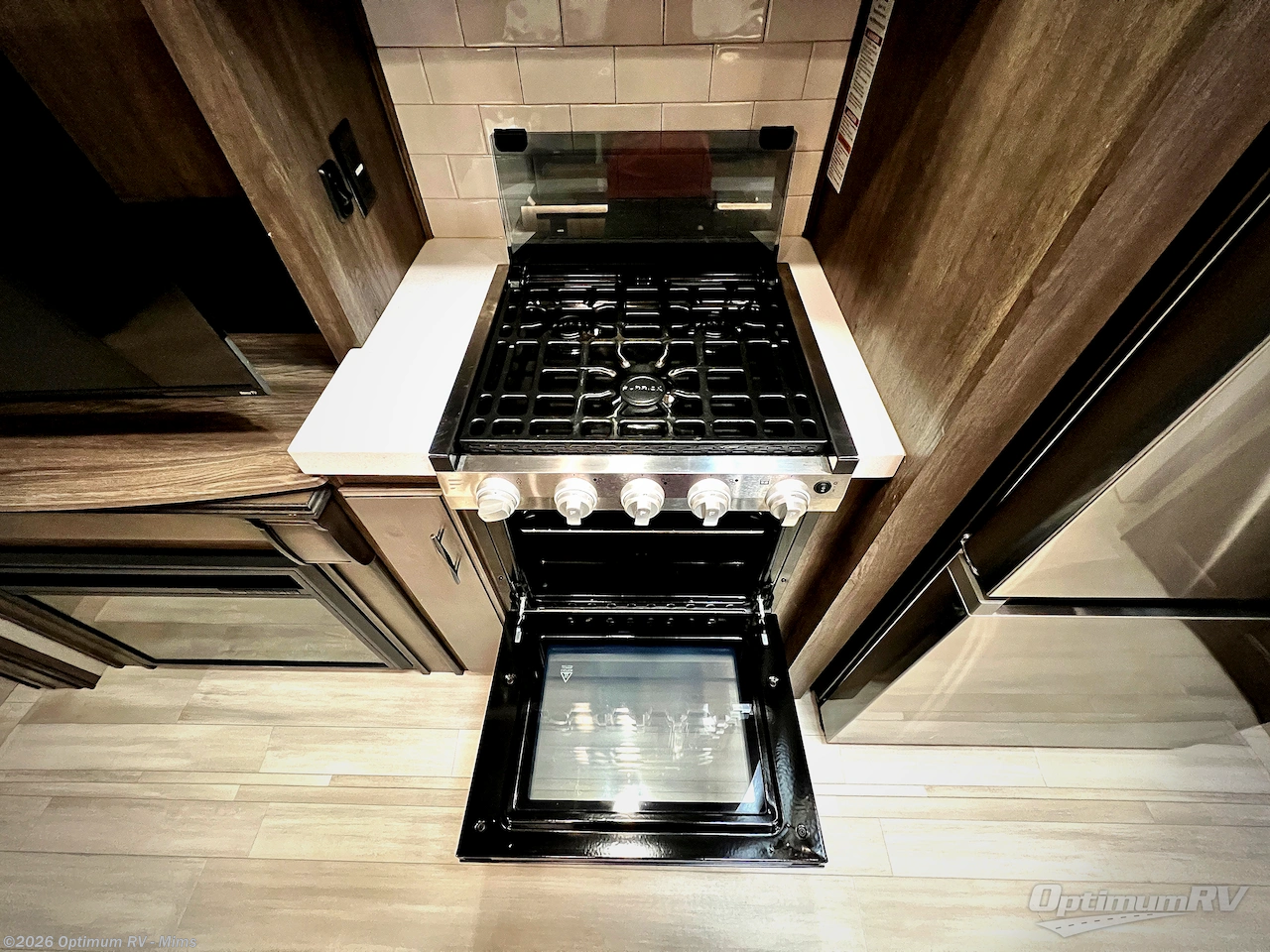 With any Solitude S-Class fifth wheel by Grand Design you will appreciate the Max Built Construction Package that features a 101" wide-body, gel coat exterior sidewalls, heavy-duty 7,000 lb. axles, plus many more durable construction materials. The self-adjusting brakes and the MORryde CRE3000 suspension system will provide a smooth towing experience, and each model includes heavy duty 17.5" H-rated tires with NitroFill. Some of the features you are sure to love are included in the Residential Living Package, like the solid surface countertops and sink covers, the hardwood cabinet doors, the night stands with USB ports, and the Rockford Fosgate stereo entertainment system with HDMI and App controls. These fifth wheels are extended-stay approved thanks to the Weather-Tek Package with a 35,000 BTU high-capacity furnace, the Stealth A/C system, and many high-end residential finishes to make you feel like you taken home with you!