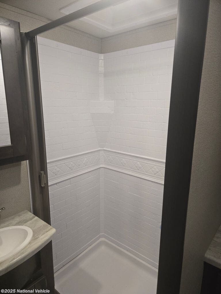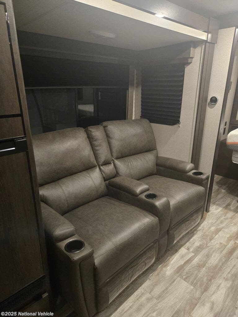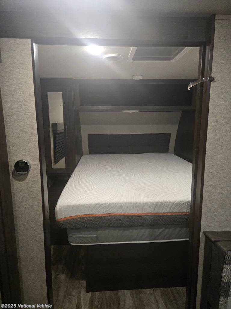 Inside, you?ll find a spacious rear kitchen with ample counter space, residential-style appliances, and plenty of storage to make meal prep a breeze. The living area offers a comfortable sofa, booth dinette, and an entertainment center for relaxing evenings on the road. Up front, the private master bedroom provides a queen bed, overhead cabinets, and dual nightstands, ensuring a restful night?s sleep.