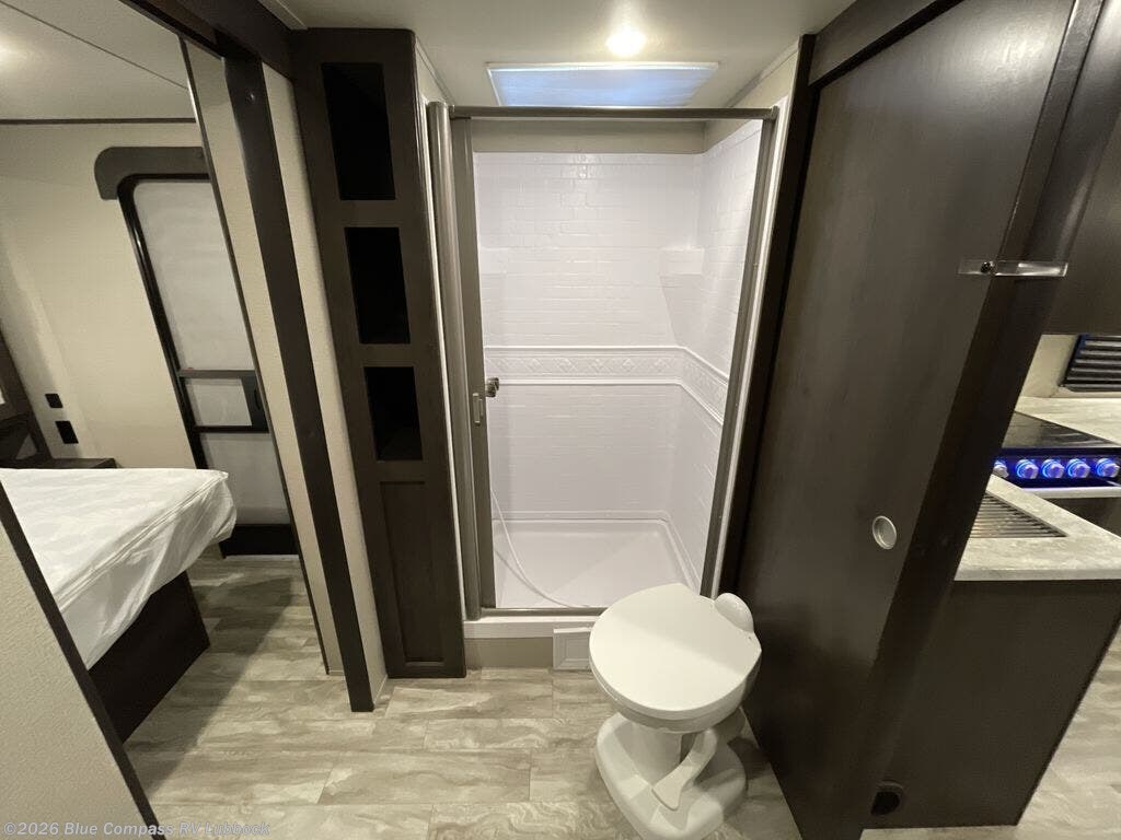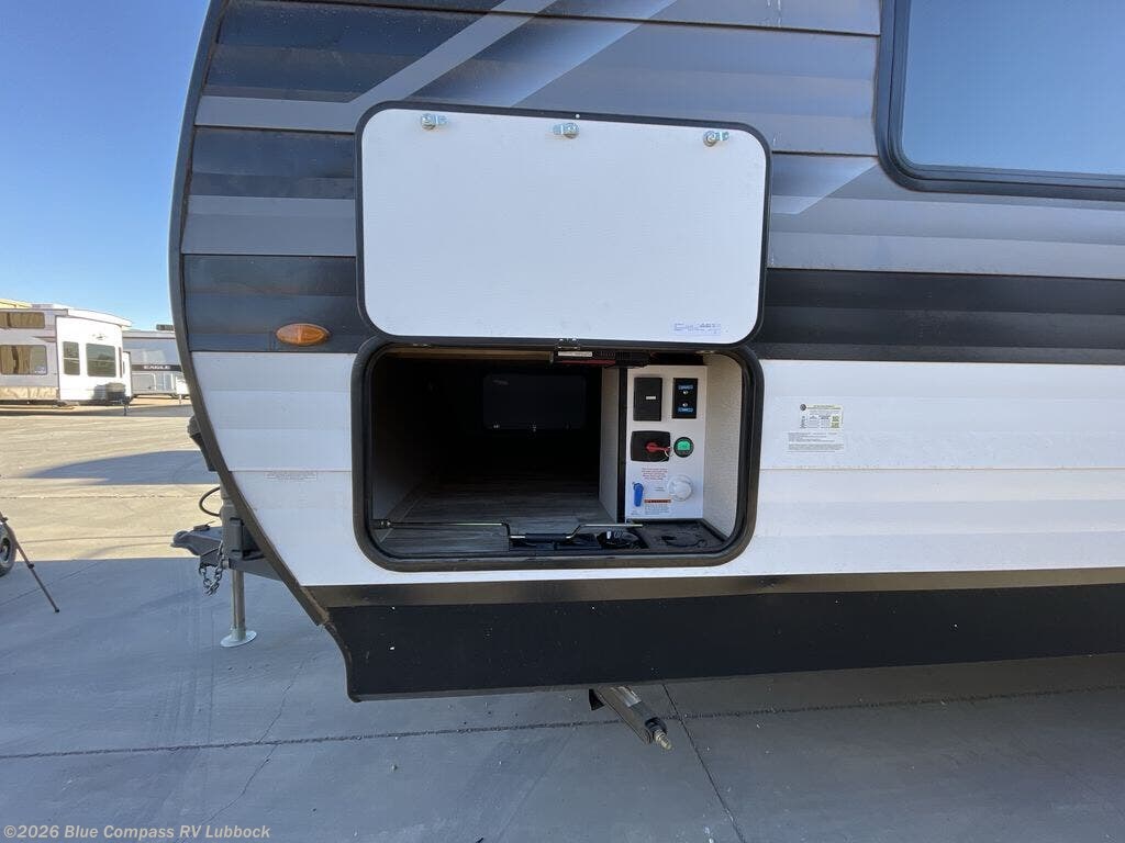 This dual-entry travel trailer will allow you to enjoy weekend getaways in complete comfort. The rear living area includes a U-shaped dinette and a tri-fold sofa that will be perfect when guests stay over. It will be so easy to fill the dog's food bowl with a convenient pet drawer under the refrigerator, and you'll find plenty of storage throughout this model for all your belongings. The walk-through bath leads to the front master bedroom where you'll find a queen bed, overhead storage, and TV prep if you choose to add your own television.