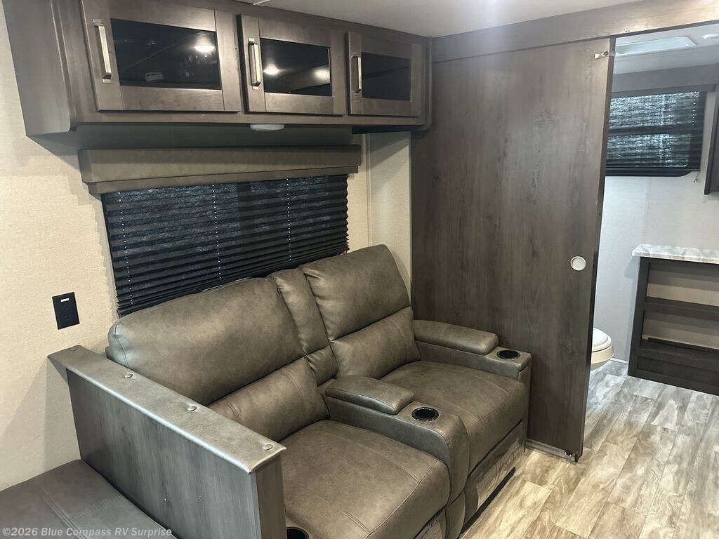 Your search for the perfect couple's trailer is over with this RV in tow! You will enjoy your own private bedroom up front with a queen bed, overhead storage, and TV prep if you choose to bring along your own television. The spacious full rear bath includes a linen closet and a walk-in shower to easily clean up each day. Relax on the theatre seating after a long day outdoors, or you can choose the optional tri-fold sofa if you need additional sleeping space. The booth dinette can also be used for an overnight guest or two little ones. This model also includes plenty of storage space and plenty of counter space to prep and cook at-home meals!