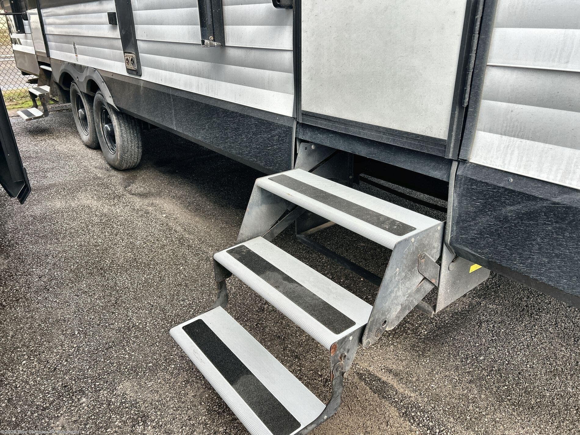 Are you ready to camp in comfort with your family or friends? This travel trailer allows you to do just that! There are double-size bunks in the back with two steps that have storage for books or board games. There is also a closet here to keep clothes wrinkle-free. The U-shaped dinette within the slide out can be switched out for the optional theatre seats, and the jackknife sofa will be the perfect spot to visit with your crew. This model features a walk-through bath that leads to the front master bedroom. You'll love the queen bed here, overhead storage, and your own exterior entry door for convenience.