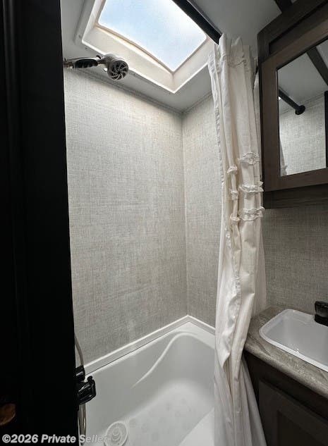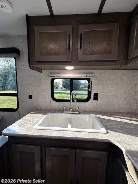 Meticulously maintained in like new condition. This is a perfect couples trailer. It is spacious with a rear kitchen, resulting in an open floor plan. Air conditioner works great (only a year old). The refrigerator is 12 volt (10.4 cu ft, very large for the size of the trailer). It has a two burner stovetop, microwave, and a two compartment sink. This trailer has an exceptional amount of storage. Cabinets galore in the kitchen, under dinette seats, under the couch, above the couch, and a large pantry. It also has a significant number of internal lights as well as an uncommonly large camp side window. The trailer is ready to go on an adventure. I am only selling this trailer, because I purchased a larger one. The trailer is 19ft and 22 ft from rear bumper to the tongue. Very light. Higher ceiling than normal. Only about 3600 lbs dry weight. Trailer has a 30 gallon fresh water tank, 36 gallon grey tank, and a 36 gallon black tank.