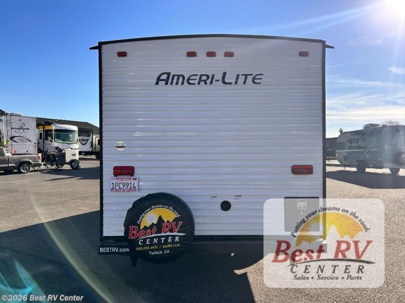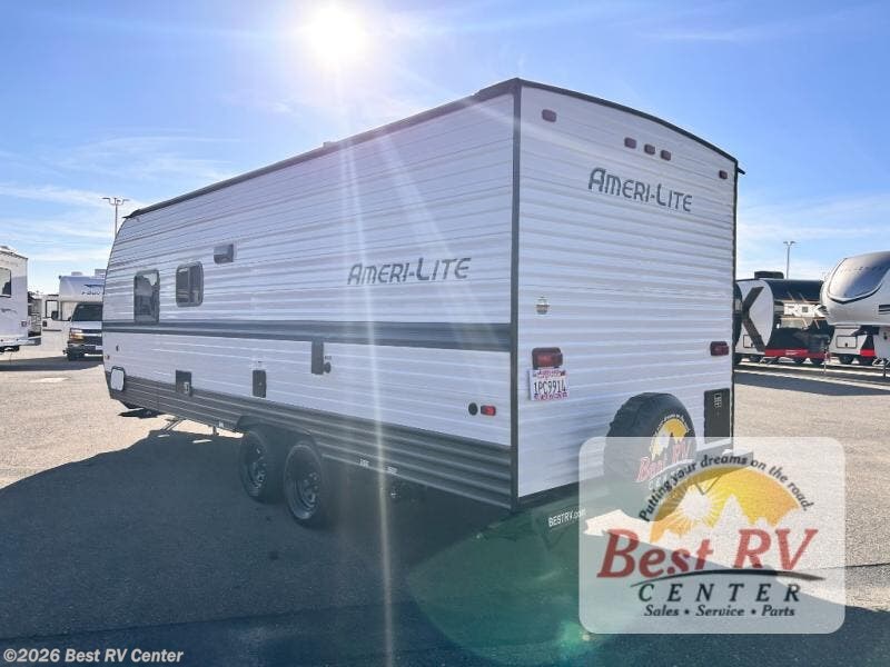 The Ameri-Lite Ultra Lite travel trailers by Gulf Stream are the perfect RV for families wanting to start their camping lifestyle, but not break the bank. These lightweight units include quality construction, such as a tubular steel cambered frame, strong wood roof decking, and full-width steel outriggers for maximum support. The front power hitch jack and four stabilizer jacks will make set-up hassle-free once you arrive at the campground, and you can put out the electric awning to rest in the shade when you're done. Each model includes convenient amenities, like the 13,500 BTU A/C, the 6 gallon DSI water heater, a central control panel, and multiple USB ports for your tablet, phone, and camera! The inside is designed to make you feel at home with radiant LED lighting, designer kitchen backsplash, pleated privacy shades, craft-made cabinetry, plus many more features. Start your RV lifestyle with an affordable, lightweight Ameri-Lite Ultra Lite travel trailer today!