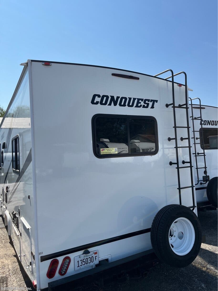 2022 Gulf Stream Conquest 6280 Class #C - Serviced Here Since New - 7500lbs Hitch - TV in Living Room - 4.0 Generator - Power Awning w/ LED Lights - SS Appliance PKG - High Gloss Fiberglass - Stove w/ Oven - Ducted A/C - Emergency Start - Deluxe Mattress - Safety Net For Bunk - Rear Window - Backup & Side View - Reat Ladder - Spare Tire - Outside Shower - Black Tank Flush - Well Cared For RV.
