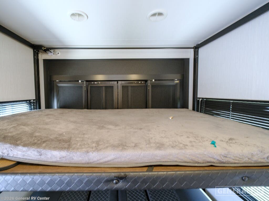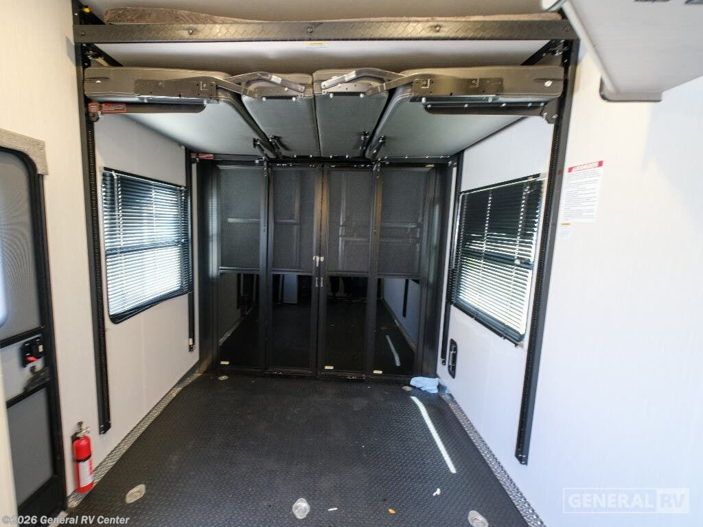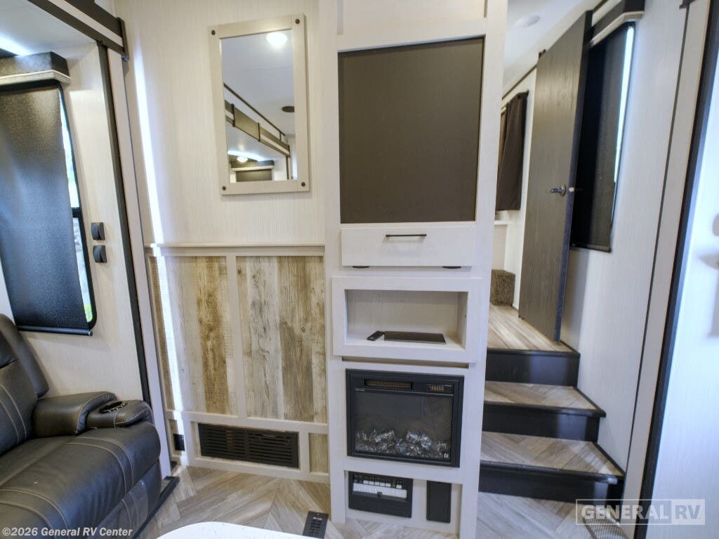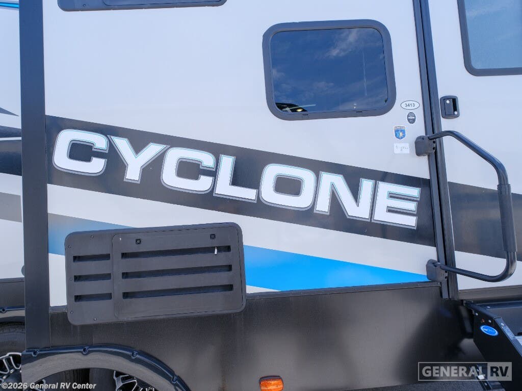 Experience the ultimate in luxury and adventure with the 2022 Heartland Cyclone CY 3413. This stunning toy hauler is designed to elevate your travel experience, offering a perfect blend of comfort and functionality. With a spacious 13'4" garage, you have ample room to bring along your favorite toys and gear, while the powered retractable awnings provide shade and relaxation wherever you park. The interior boasts a sophisticated layout with a center kitchen and living area, featuring modern appliances and a full-size refrigerator powered by electric or propane, ensuring your meals are always fresh and satisfying. The Cyclone CY 3413 comfortably sleeps up to seven, with a tilting king bed in the front bedroom, a queen bed in the garage, and additional convertible sleeping options. The thoughtfully designed center bath offers convenience and privacy, while the washer/dryer prep ensures you're always ready for extended adventures. With three slides, this RV provides an open and airy feel, making it your perfect home away from home. Whether you're off to the mountains or the beach, the Heartland Cyclone CY 3413 is your ultimate companion for unforgettable journeys. For more information, visit your nearest General RV Dealership.