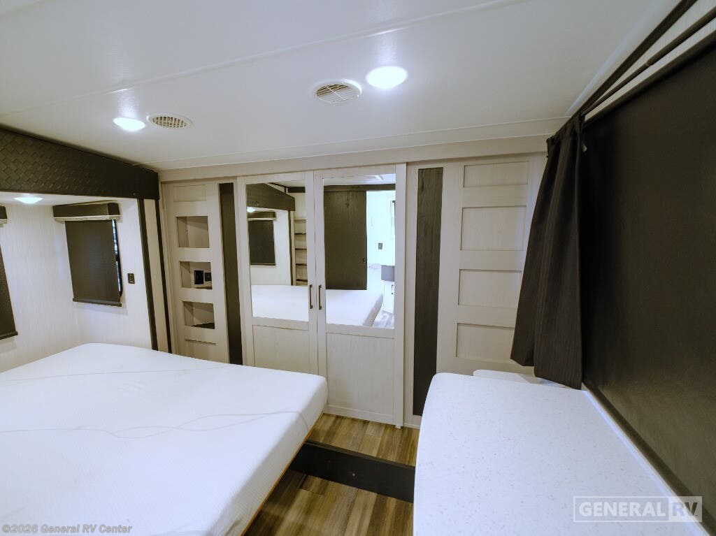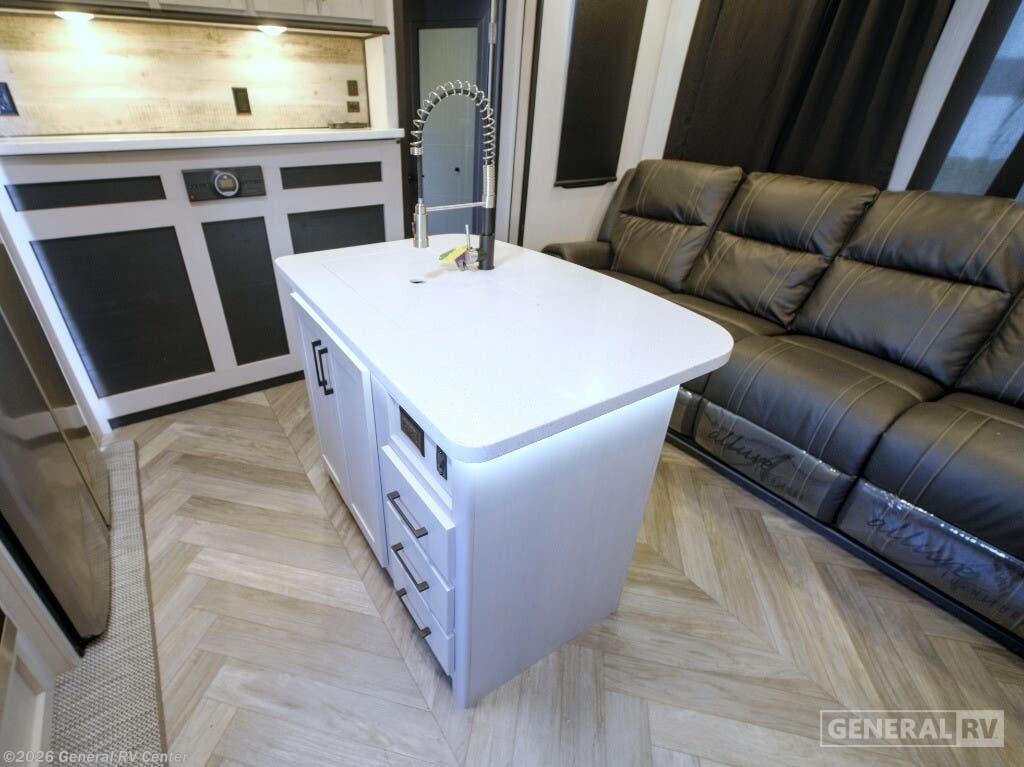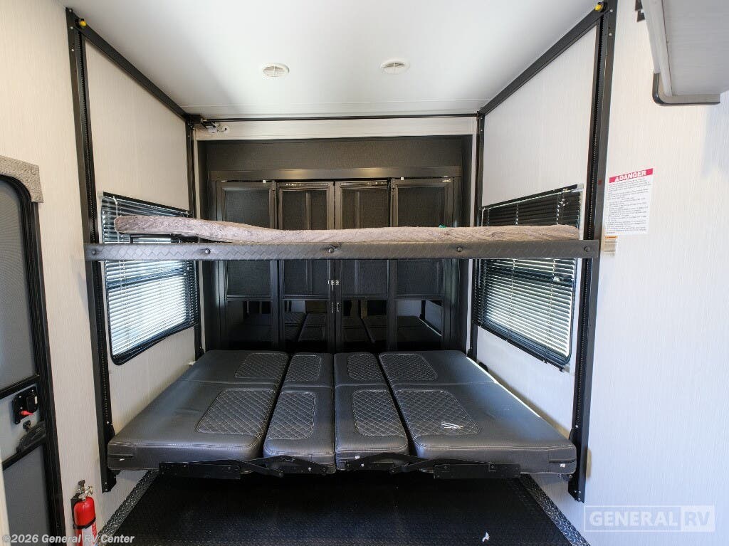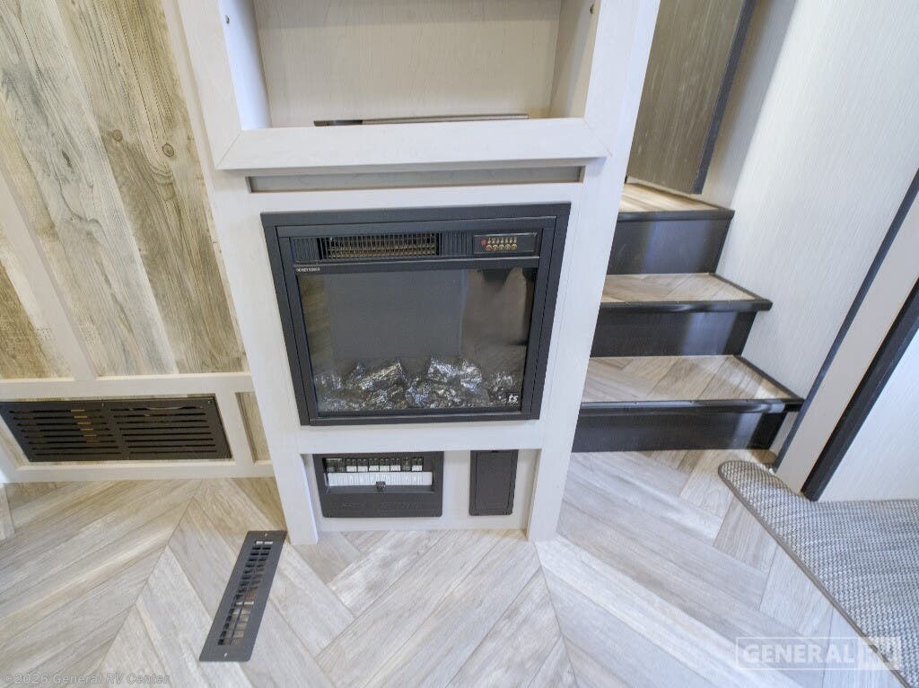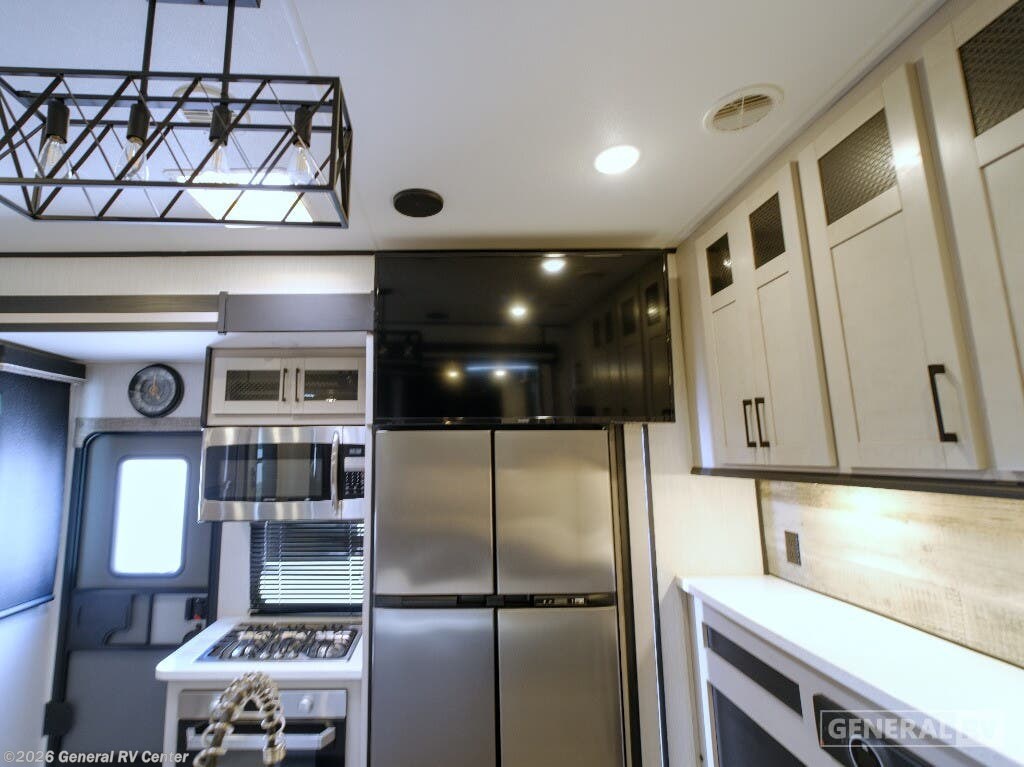 Experience the ultimate in luxury and adventure with the 2022 Heartland Cyclone CY 3413. This stunning toy hauler is designed to elevate your travel experience, offering a perfect blend of comfort and functionality. With a spacious 13'4" garage, you have ample room to bring along your favorite toys and gear, while the powered retractable awnings provide shade and relaxation wherever you park. The interior boasts a sophisticated layout with a center kitchen and living area, featuring modern appliances and a full-size refrigerator powered by electric or propane, ensuring your meals are always fresh and satisfying. The Cyclone CY 3413 comfortably sleeps up to seven, with a tilting king bed in the front bedroom, a queen bed in the garage, and additional convertible sleeping options. The thoughtfully designed center bath offers convenience and privacy, while the washer/dryer prep ensures you're always ready for extended adventures. With three slides, this RV provides an open and airy feel, making it your perfect home away from home. Whether you're off to the mountains or the beach, the Heartland Cyclone CY 3413 is your ultimate companion for unforgettable journeys. For more information, visit your nearest General RV Dealership.