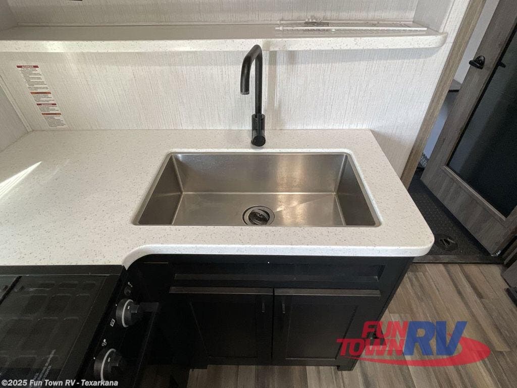 Whether you choose to bring along kayaks, dirt bikes, or a side-by-side, this toy hauler is equipped for all your adventures. Once you unload using the ramp door, you can relax on the convertible sofa while your teens climb in the loft area. The main living area is made spacious thanks to the slide out that includes reclining sofa seating with cup holders and USB ports. The chef of your group can prepare meals on the three burner cooktop, or use the microwave oven inside, and there is also an outdoor kitchen that is perfect when you want to cook and eat outdoors. There is a stainless steel refrigerator here, plus a counter with swing-out stools the all are sure to love. The dual entry bath includes a shower with a seat for convenience, and you'll love the front private bedroom with a king bed and a wardrobe slide for more space!