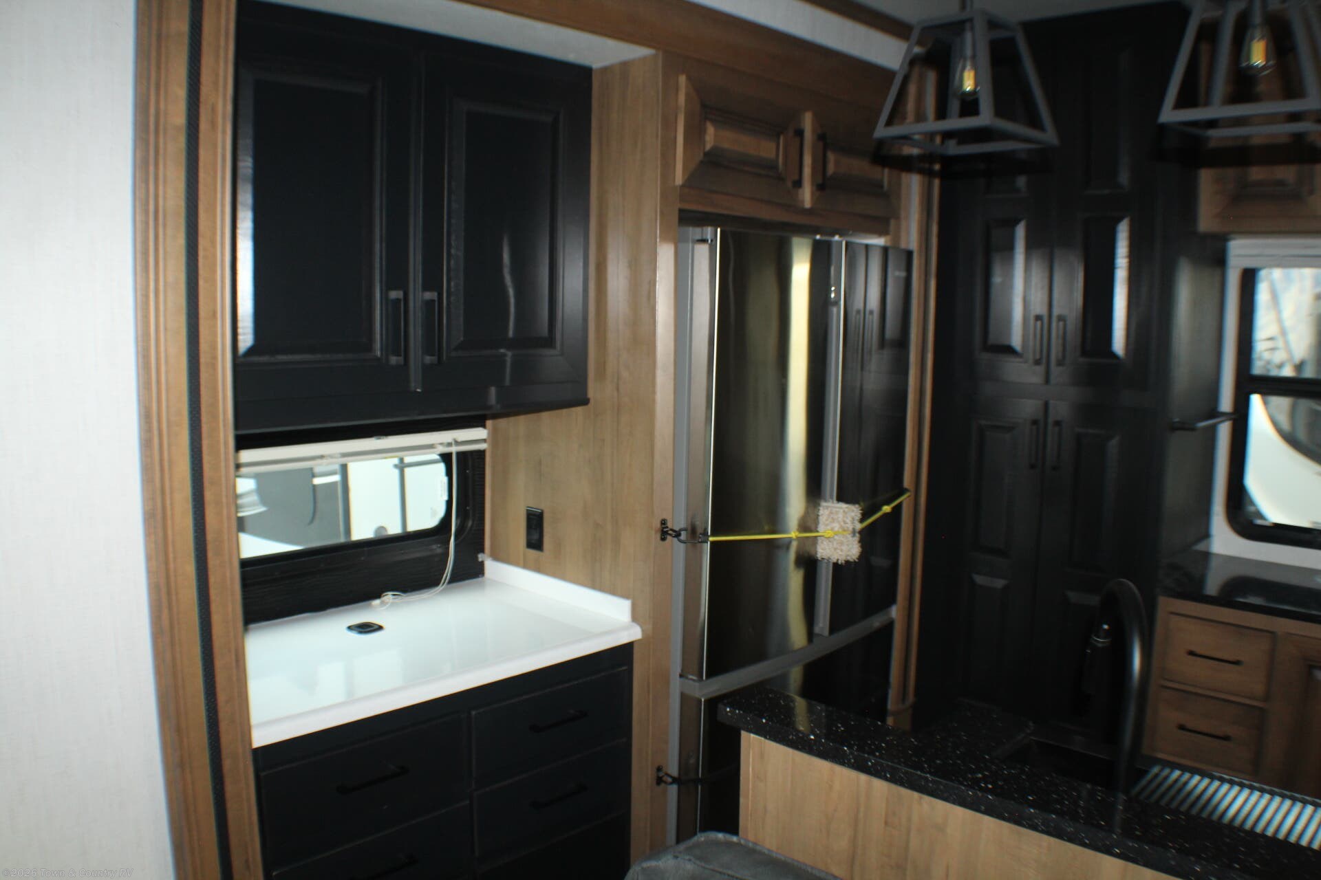 Front Bedroom - Bath and a Half: 4 Slides, Air, Awning, Furnace, Back Ladder, Oven/Stove, Refrigerator, Microwave, Pantry, Free Standing Dinette, Ceiling Fan, Sofa/Bed, Theater Seating, TV, Sleeps 4, GVWR: 18,000#, Unloaded Weight: 15,698#.