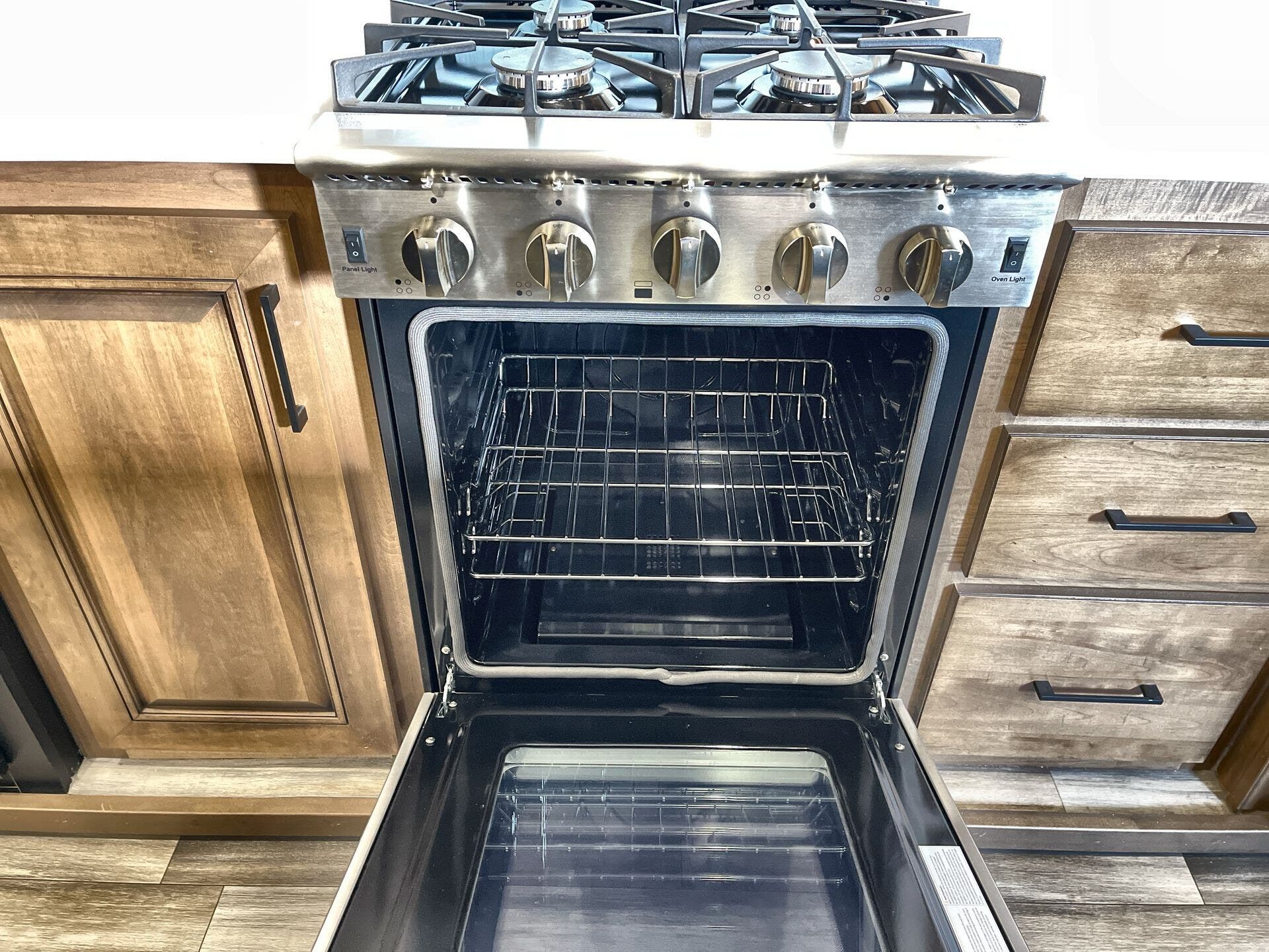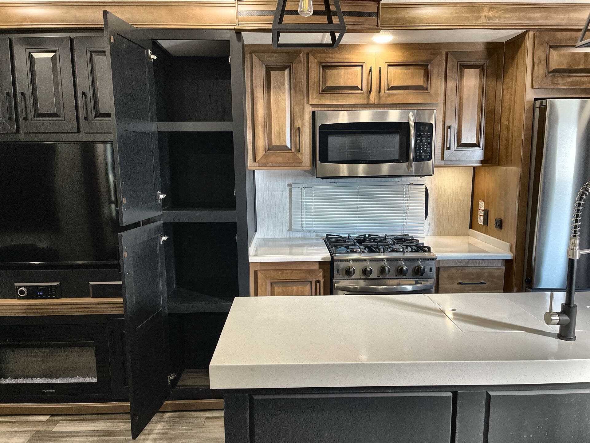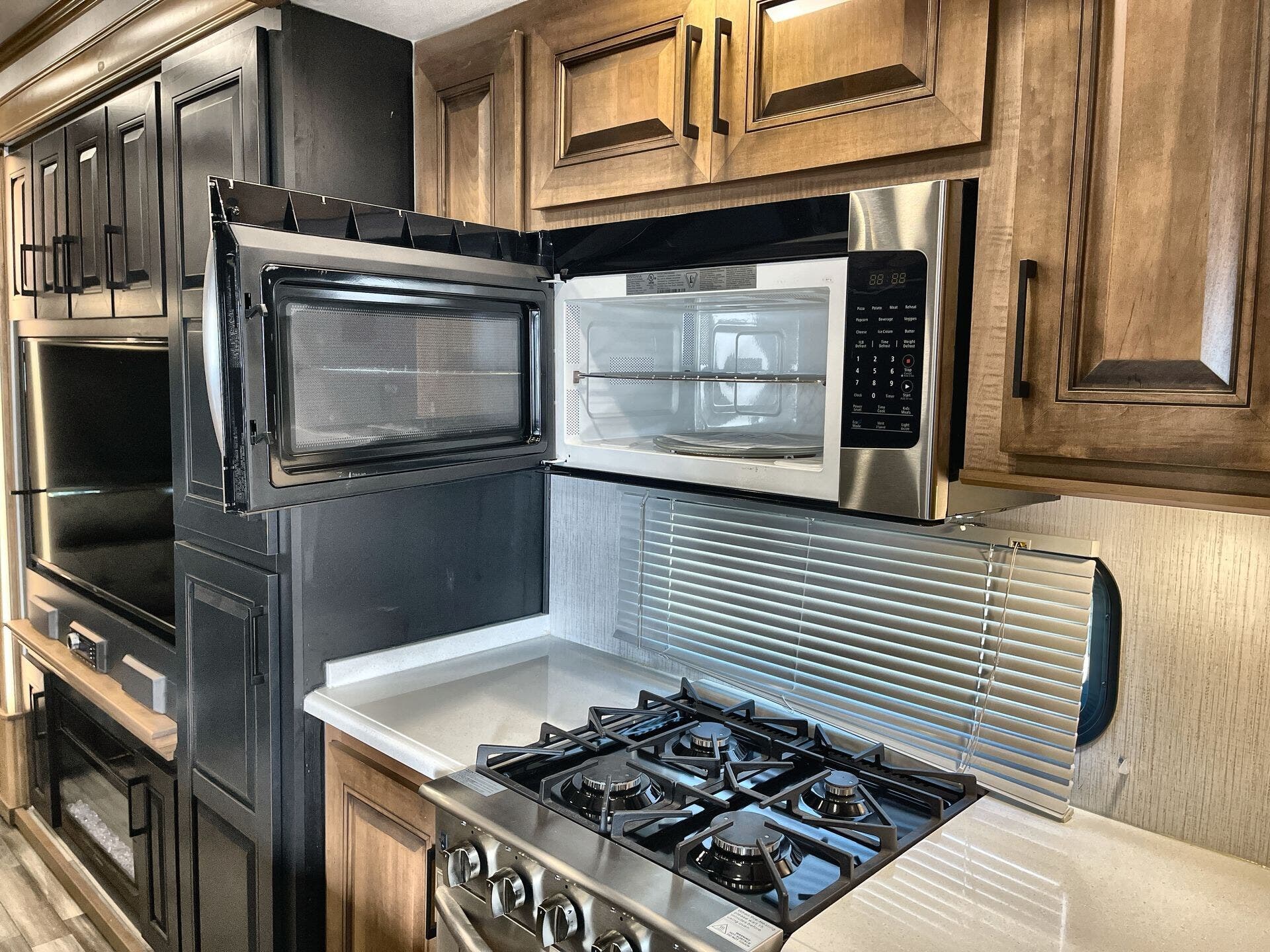 - Residential-style appliances: Microwave, Oven, Refrigerator, Stove
