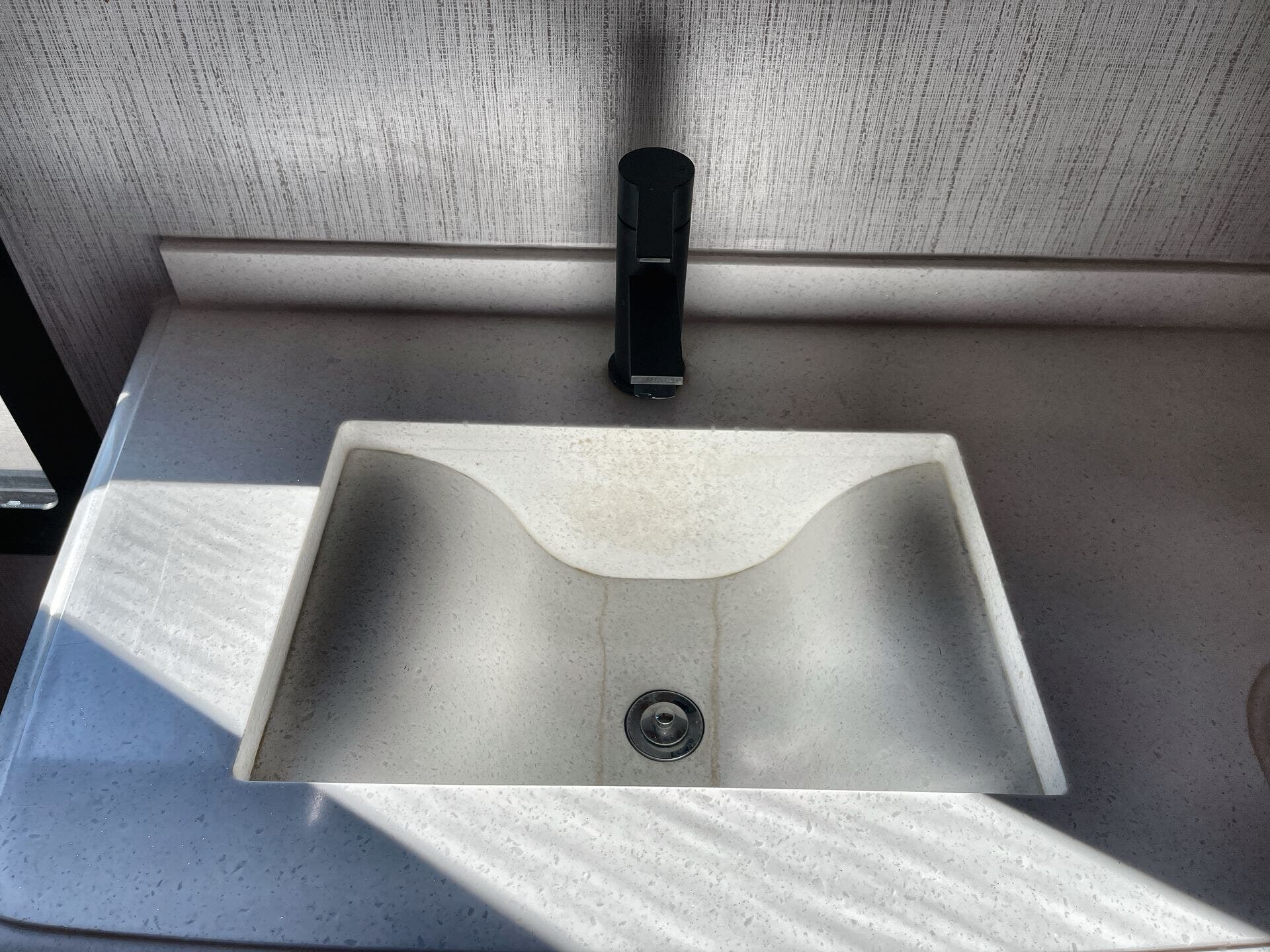 - Medicine cabinet and overhead cabinetry for abundant storage