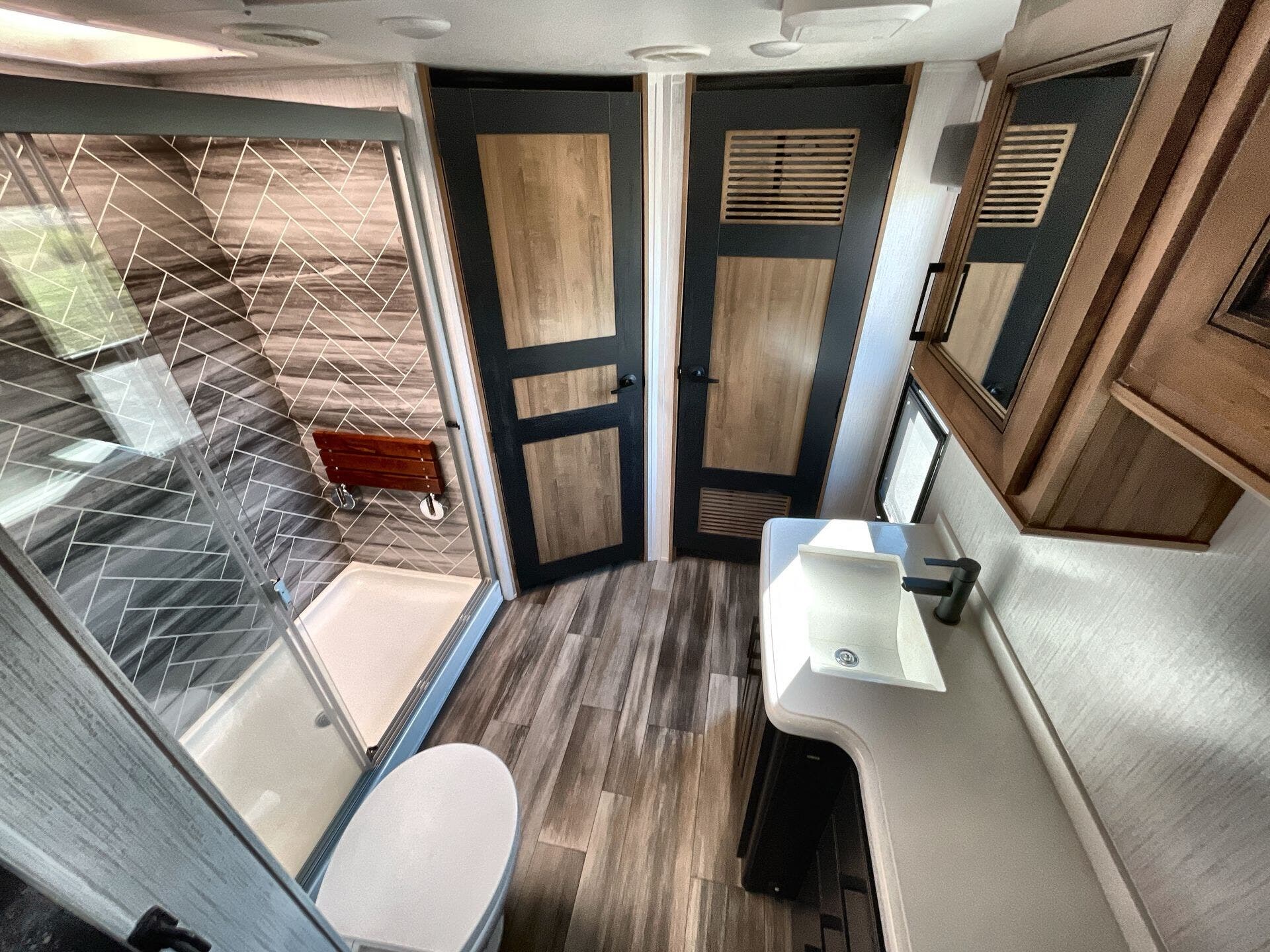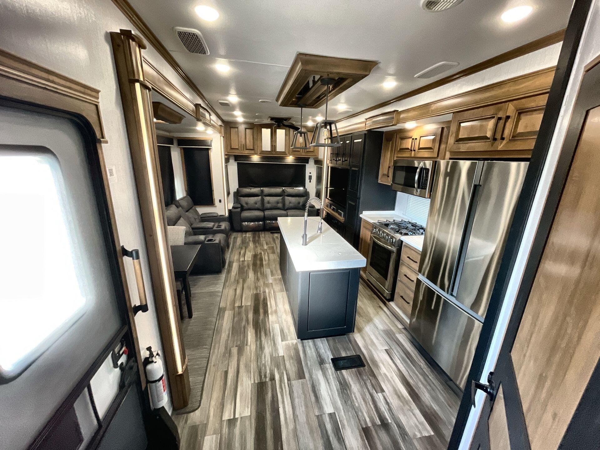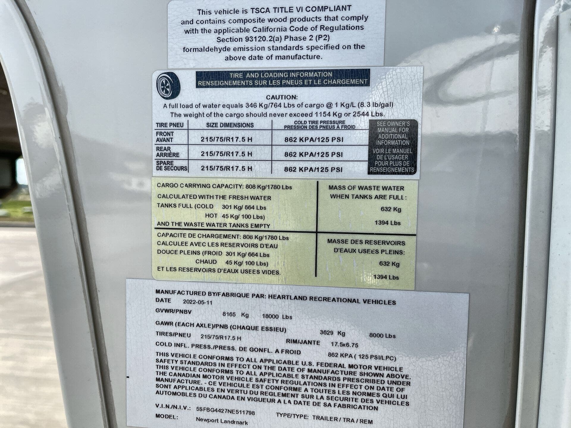 Experience elevated comfort and versatile living in the Heartland Landmark Newport, a premium fifth wheel that blends residential aesthetics with rugged RV practicality. This 2022 towable recreational vehicle delivers a spacious, three slideout interior designed for seamless long trips and full-time living. With front bath and front bedroom layouts, a mid kitchen and mid bath, plus a rear dinette and rear living area, you’ll enjoy generous elbow room, versatile seating, and abundant storage for extended adventures.