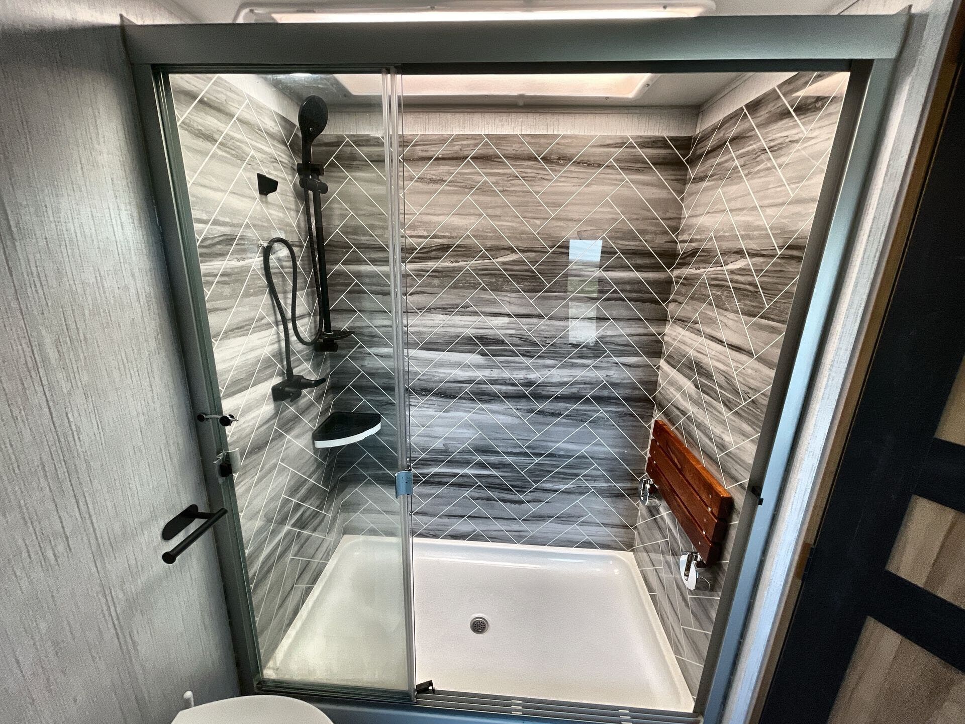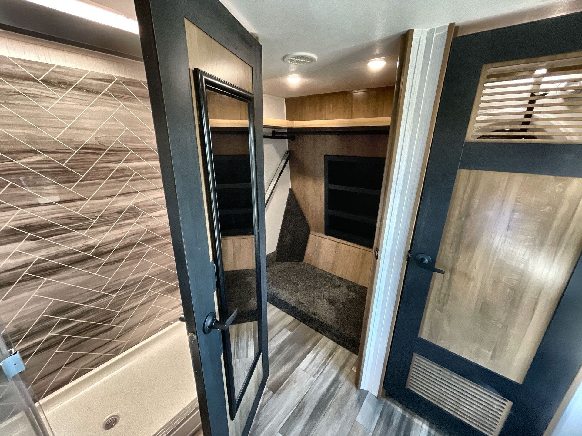 - Floorplan Type: Newport with Front Bath, Front Bedroom, Mid Bath, Mid Kitchen, Rear Dinette, Rear Entertainment, Rear Living Area