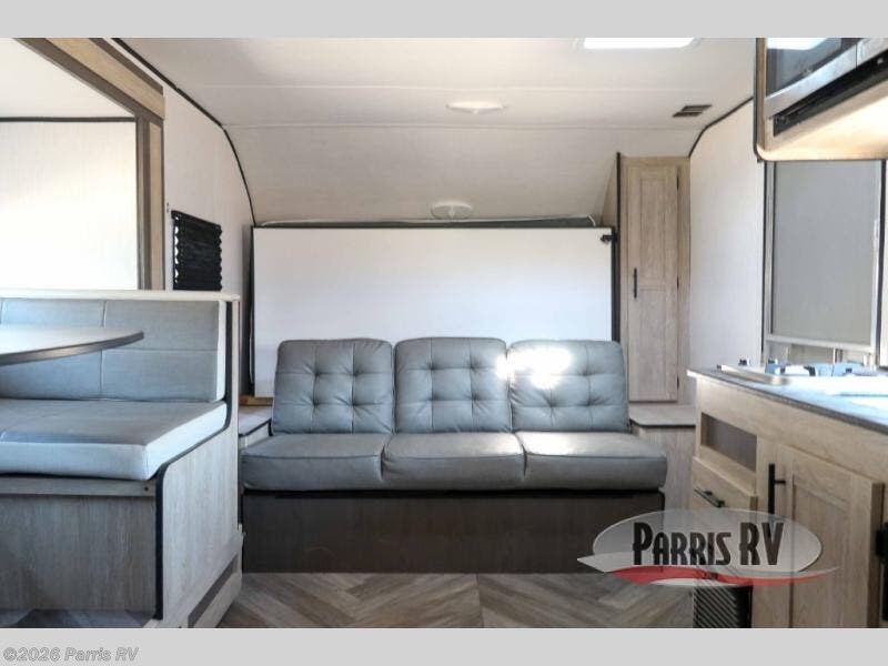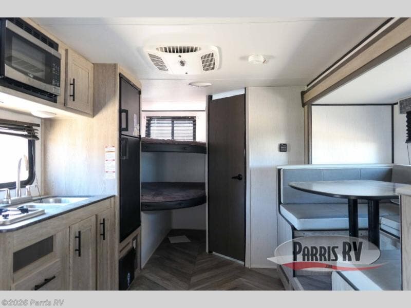 This model resembles model 172BHX, but you'll enjoy a U-shaped dinette slide instead of the booth dinette, and there is still versatility provided by the front queen Murphy bed. The double-size bunks are sure to be a big hit with the little ones, and the full bath is close by for nighttime use. Head outdoors to cook on the outdoor kitchen that includes a griddle, and you'll appreciate the 14' power awning with LED lights giving you shade as you cook. If the weather isn't cooperating, just cook indoors on the cooktop or use the microwave oven!