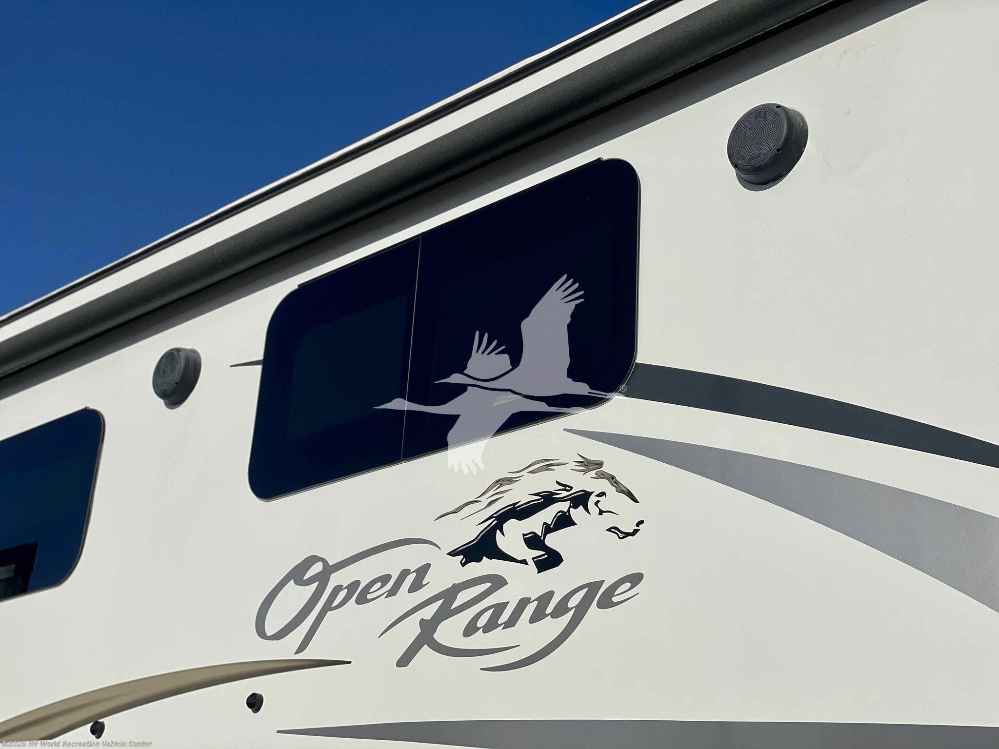Stock# C18675. Make owning the outdoors a lifestyle in the Open Range fifth wheel. This fifth wheel has enough sleeping and storage space for the whole family. Along with luxurious interior amenities such as an updated decor package and a large free-standing range and oven, this lineup comes standard with construction features including LevelLocâ„¢?- our 4 or 6 point auto-leveling and JT's Strong Armâ„¢ stabilizer package that provides a strong foundation. We are giving you style, innovation and reliability all in one. Enjoy your home on the road with the Open Range fifth wheel lineup. The 314RLS is a 36' 9" Rear Living 5th wheel and is surprisingly lightweight at under 11,000lbs. It is easy to maintain, loaded with features, and built to last for years while remaining completely affordable at a mid-price point category. The floor plans in the Open Range trailers are numbered in terms of square feet of living space, not in length. That is because they have 100-inch wide-body chassis, along with slide-outs that are 6 inches deeper than most, creating extra living space in each and every floor plan, regardless of length. This simply adds up to more living space with less length to tow. Features in this 5th wheel trailer include 2 roof A/C units, RidgeLINK TM- Bluetooth Control of Slides, Patio Awning, Lighting, Auto-Levelers, Corian counter tops, fireplace, 42 inch LCD TV, 6 point leveling, washer dryer prepped, king size bed, and more.