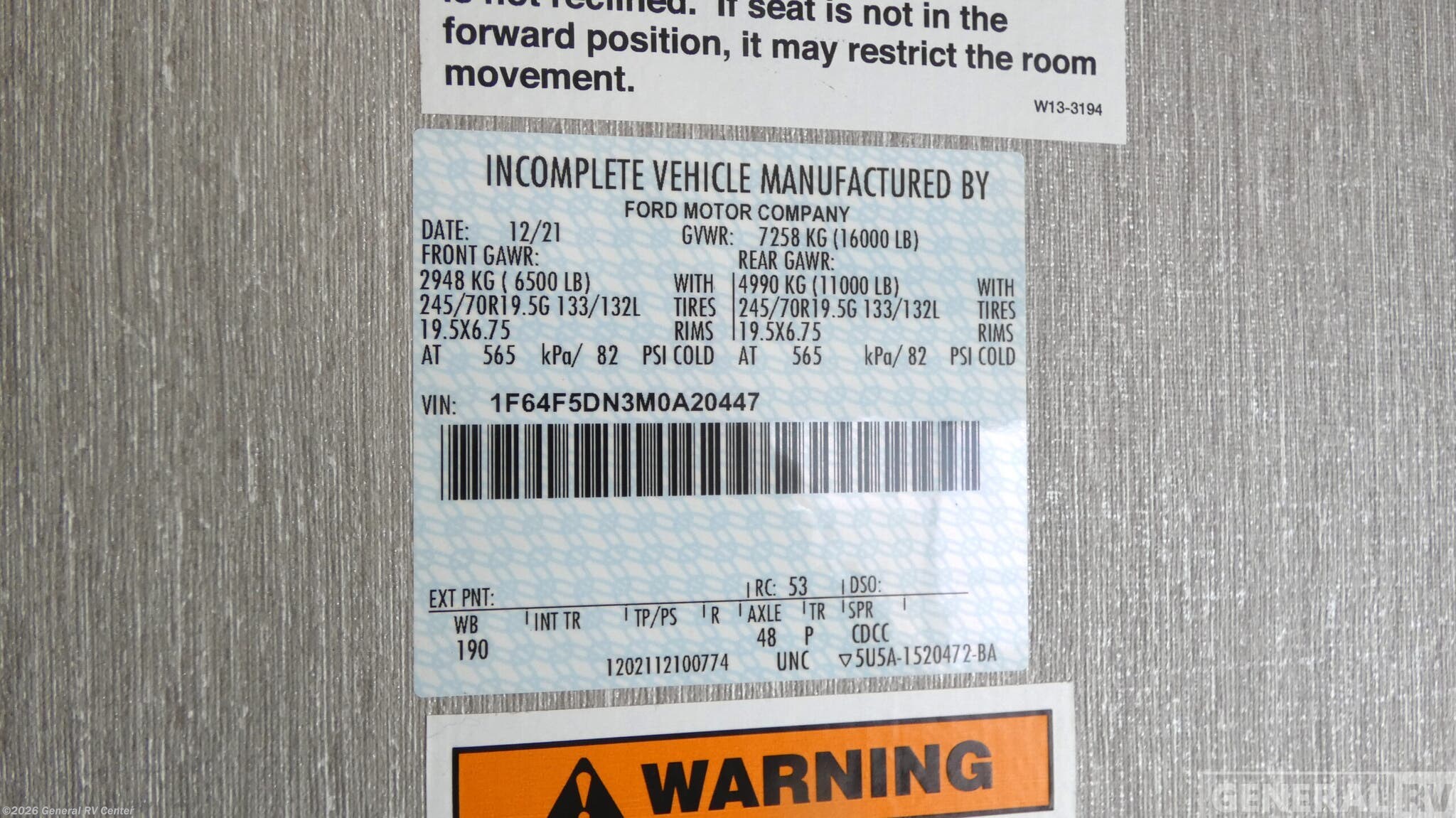 - VIN1F64F5DN3M0A20447