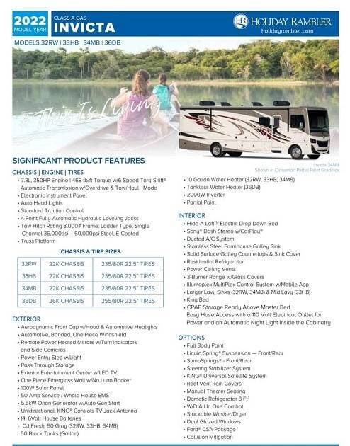 Looking to buy a 2022 Holiday Rambler Invicta Class A RV?