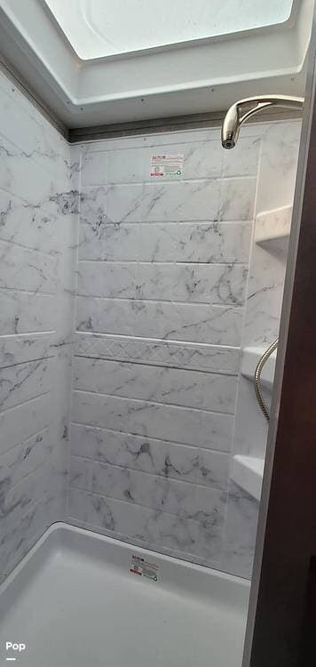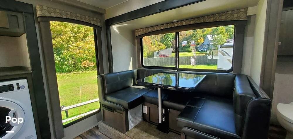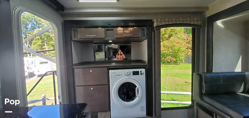 This camper also includes a fireplace and a washer/dryer combo unit!