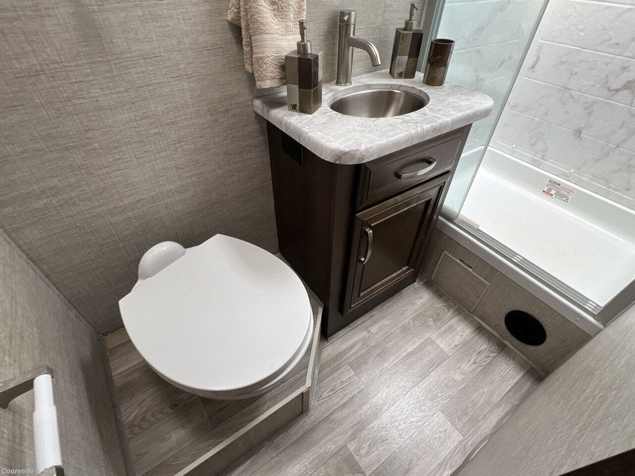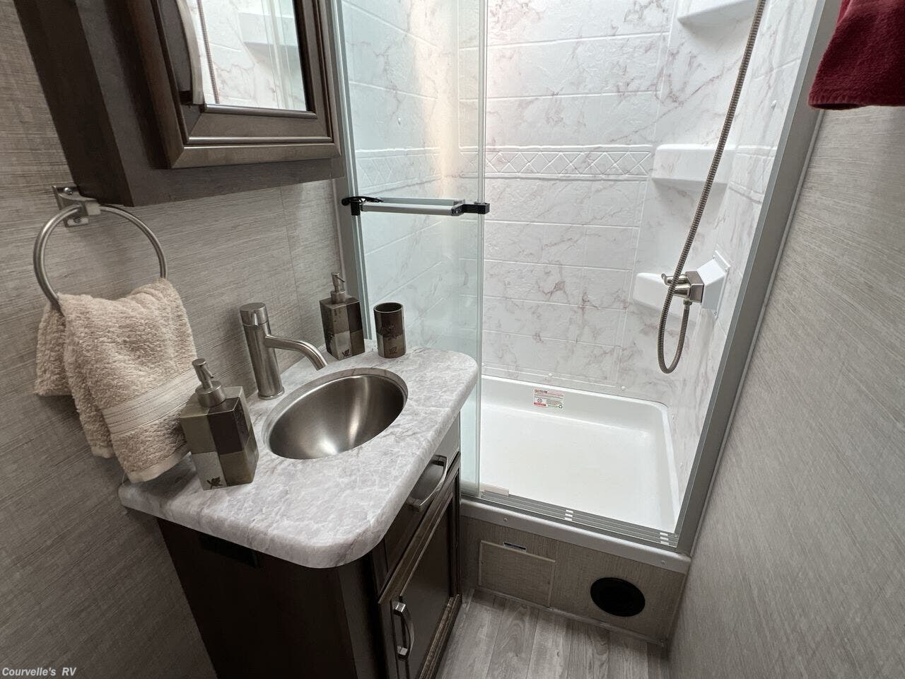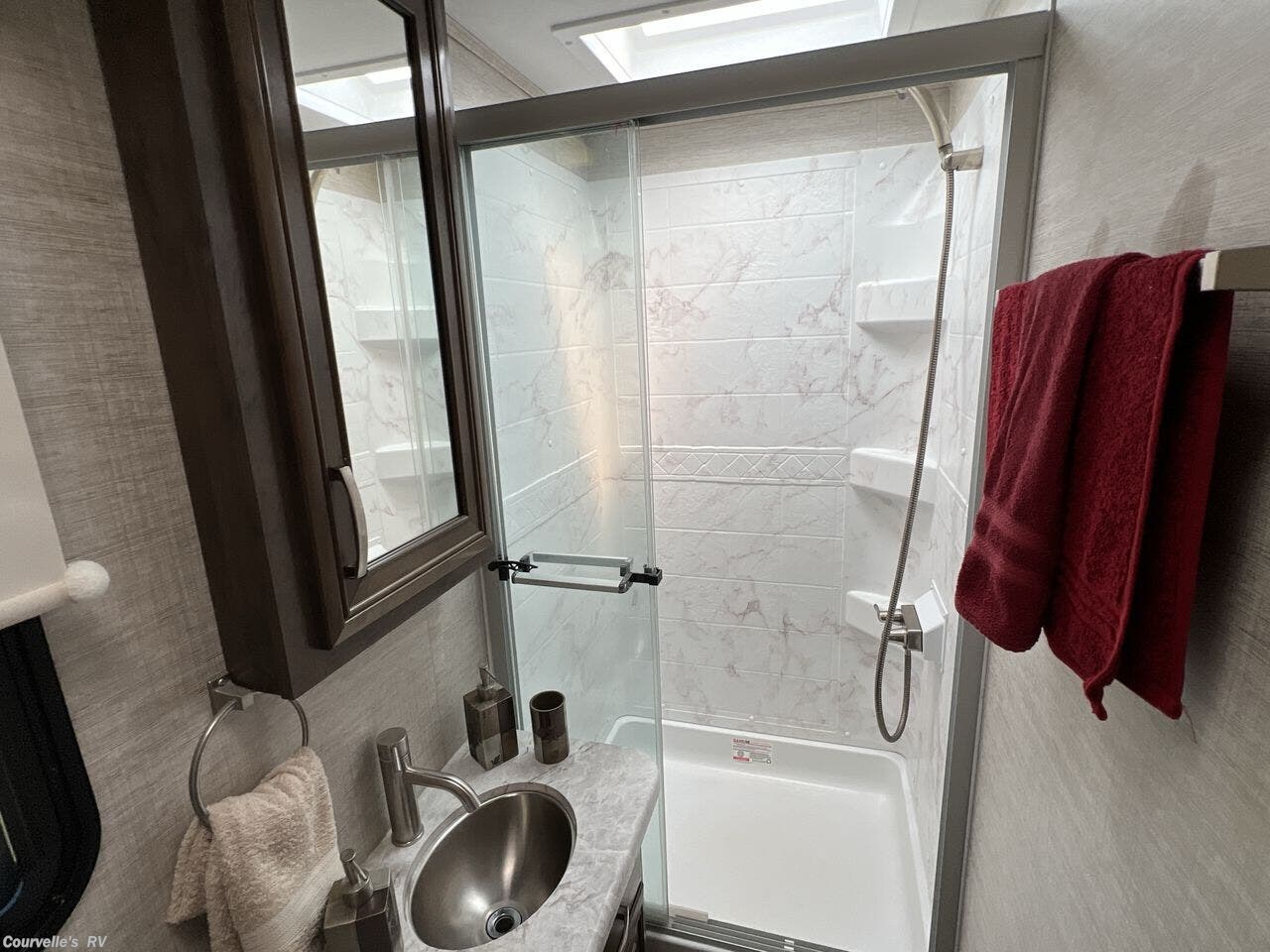 Booth Dinette, Glass Shower Door, King Size Bed, Leather Furniture, Medicine Cabinet, Non-Smoking Unit, Pantry, Roof Vents, Self Contained, Shower, Toilet -
