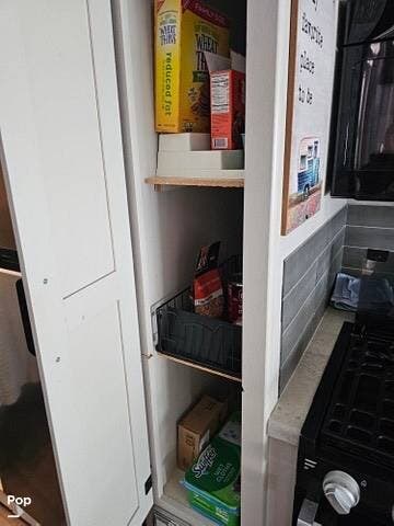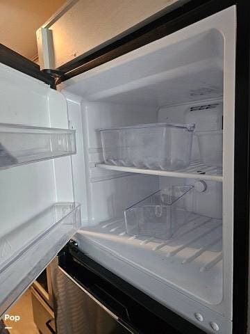 A generously sized kitchen area features residential essentials like a double sink, stove/oven, a newer electric refrigerator/freezer (also runs on the inverter), and ample storage space.