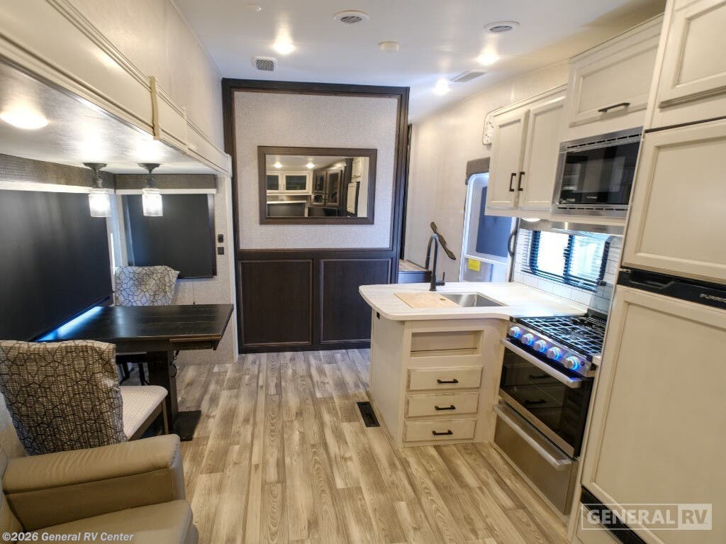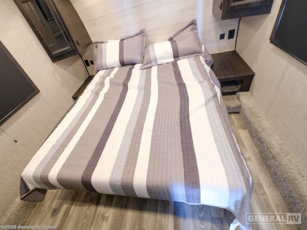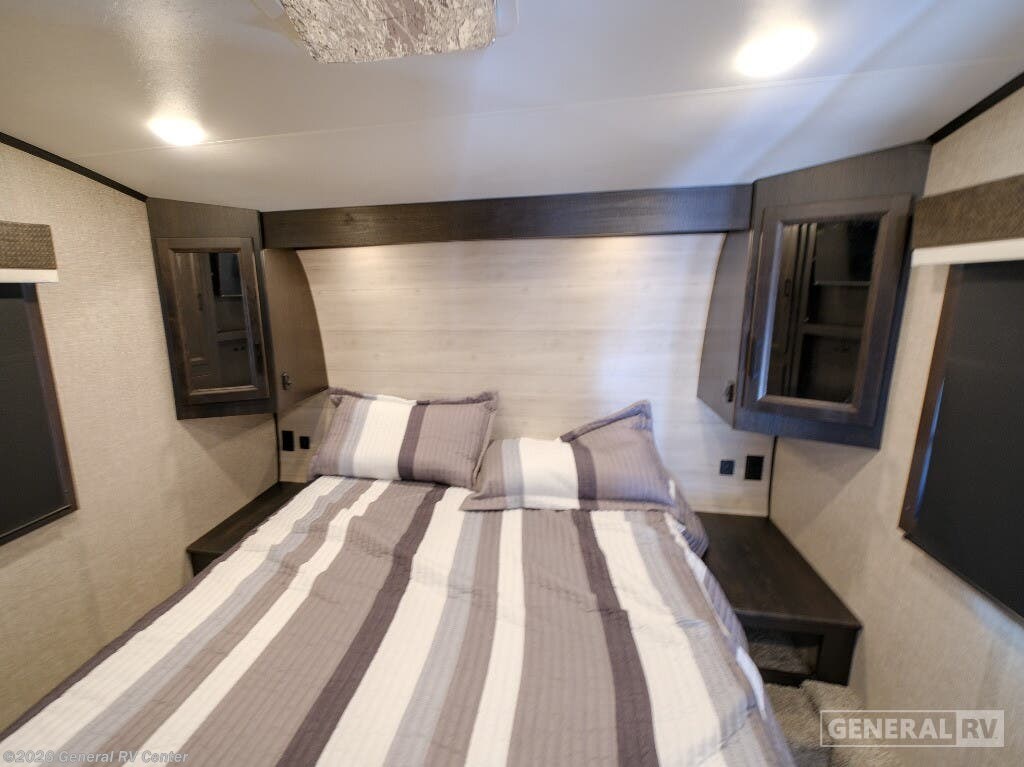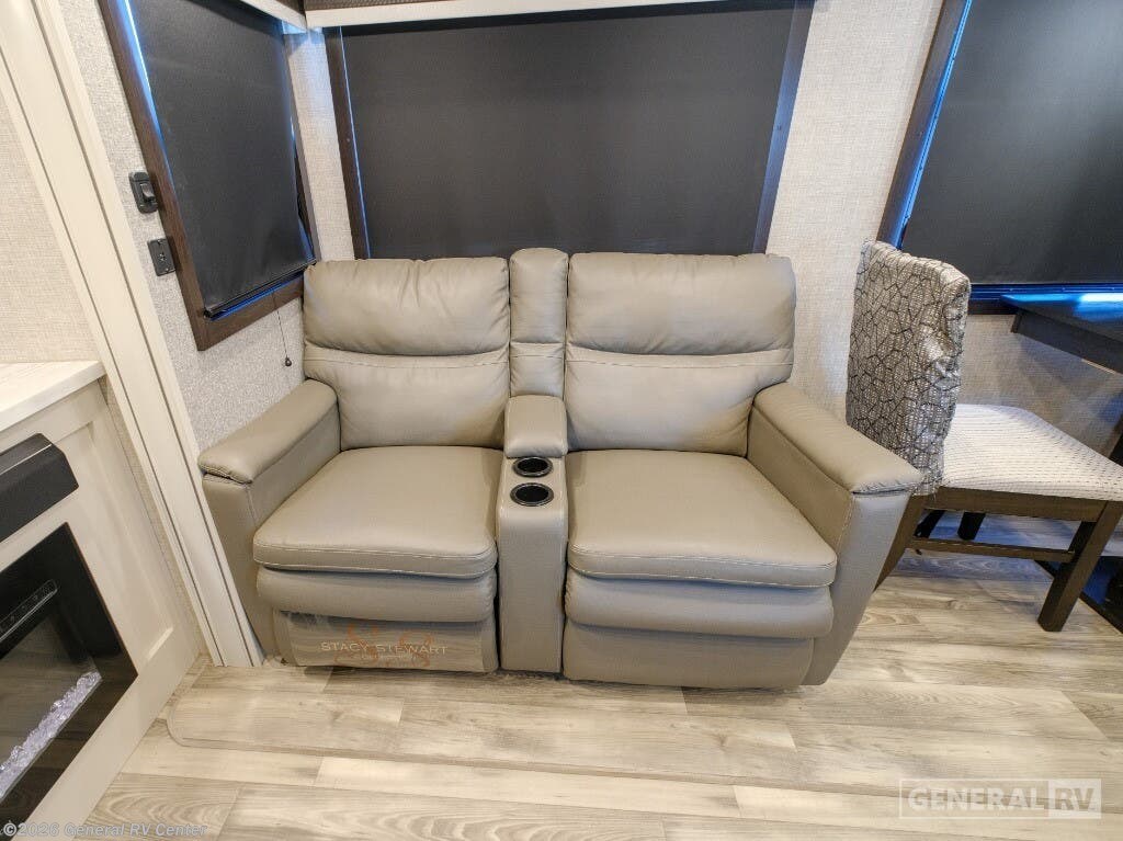 Experience the ultimate in comfort and style with the 2022 Jayco Eagle HT 24RE. This fifth wheel is designed for those who love adventure without sacrificing the comforts of home. As you enter, you’re greeted by a spacious rear living area featuring a cozy tri-fold sofa, perfect for unwinding after a day of exploration. The center kitchen is a culinary delight, equipped with a three-burner cooktop and a mid-size refrigerator that runs on both electric and propane, ensuring your meals are always a success, no matter where your travels take you. The Eagle HT 24RE boasts a luxurious front bedroom with a queen bed, offering a peaceful retreat for a restful night's sleep. The cleverly designed floorplan includes a center bath, ensuring convenience and privacy. With ample storage options, including a walk-in pantry and overhead cabinets, you’ll have plenty of space for all your essentials. Outside, the 19-foot powered retractable awning provides a perfect spot for outdoor relaxation, while the durable Goodyear Endurance tires ensure a smooth journey. Ready to embark on your next adventure? Visit your nearest General RV Dealership to learn more about this exceptional RV.