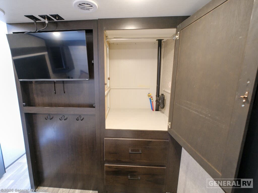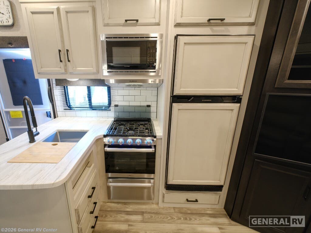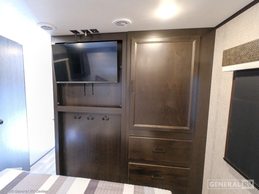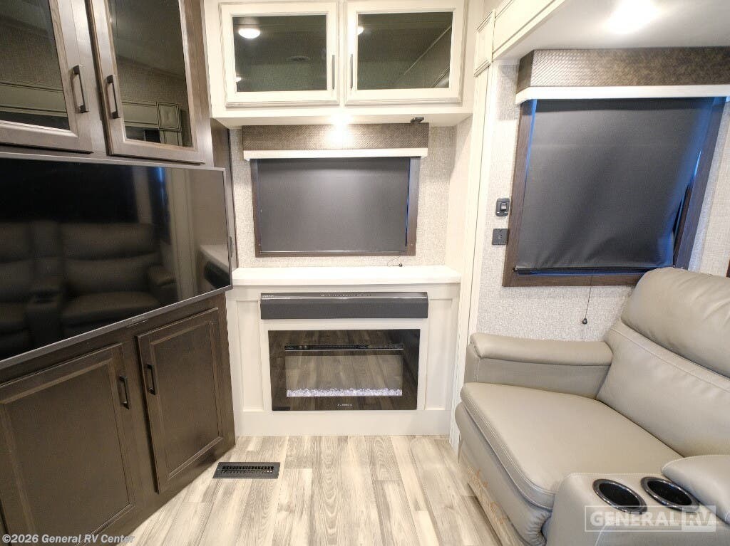 Experience the ultimate in comfort and style with the 2022 Jayco Eagle HT 24RE. This fifth wheel is designed for those who love adventure without sacrificing the comforts of home. As you enter, you’re greeted by a spacious rear living area featuring a cozy tri-fold sofa, perfect for unwinding after a day of exploration. The center kitchen is a culinary delight, equipped with a three-burner cooktop and a mid-size refrigerator that runs on both electric and propane, ensuring your meals are always a success, no matter where your travels take you. The Eagle HT 24RE boasts a luxurious front bedroom with a queen bed, offering a peaceful retreat for a restful night's sleep. The cleverly designed floorplan includes a center bath, ensuring convenience and privacy. With ample storage options, including a walk-in pantry and overhead cabinets, you’ll have plenty of space for all your essentials. Outside, the 19-foot powered retractable awning provides a perfect spot for outdoor relaxation, while the durable Goodyear Endurance tires ensure a smooth journey. Ready to embark on your next adventure? Visit your nearest General RV Dealership to learn more about this exceptional RV.