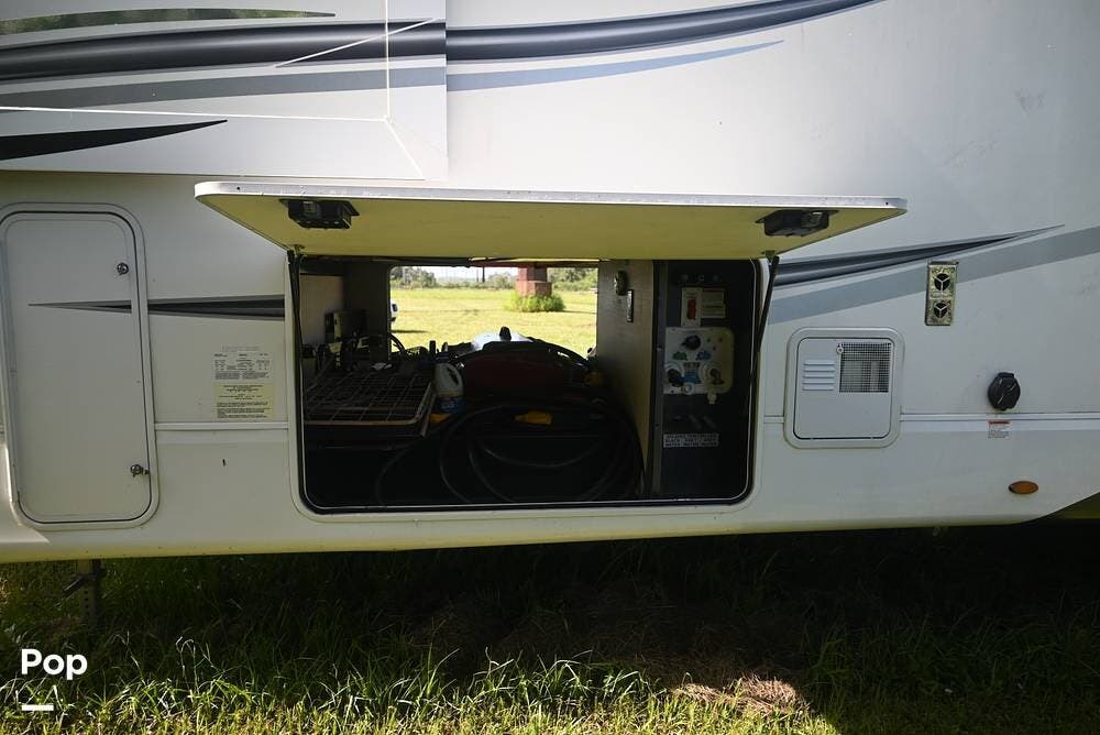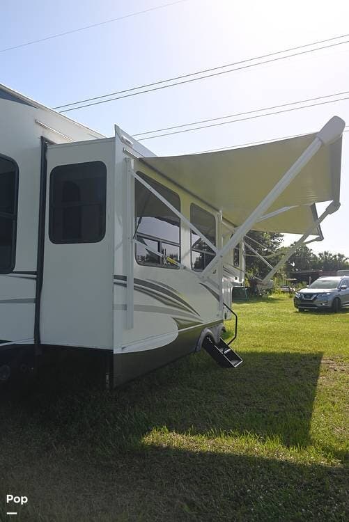 Outside, the unit features 3 power slide-outs and 2 power-retractable awnings. The unit has a lot of outside storage, including a large pass-through storage compartment.