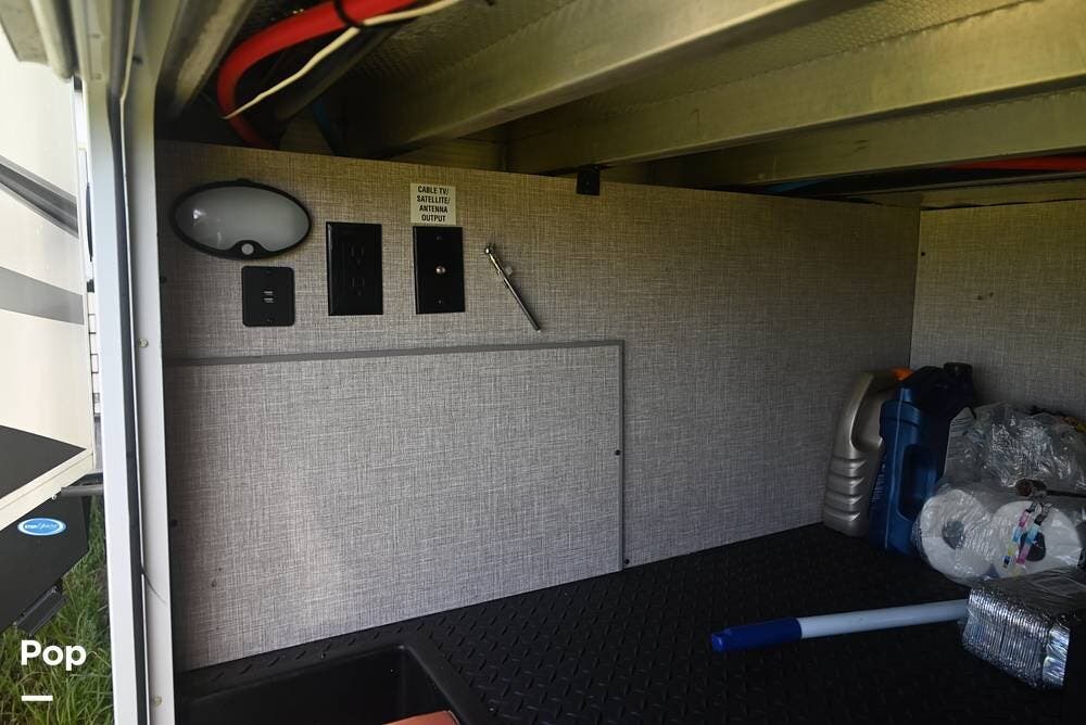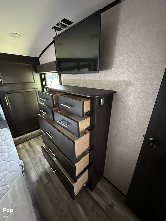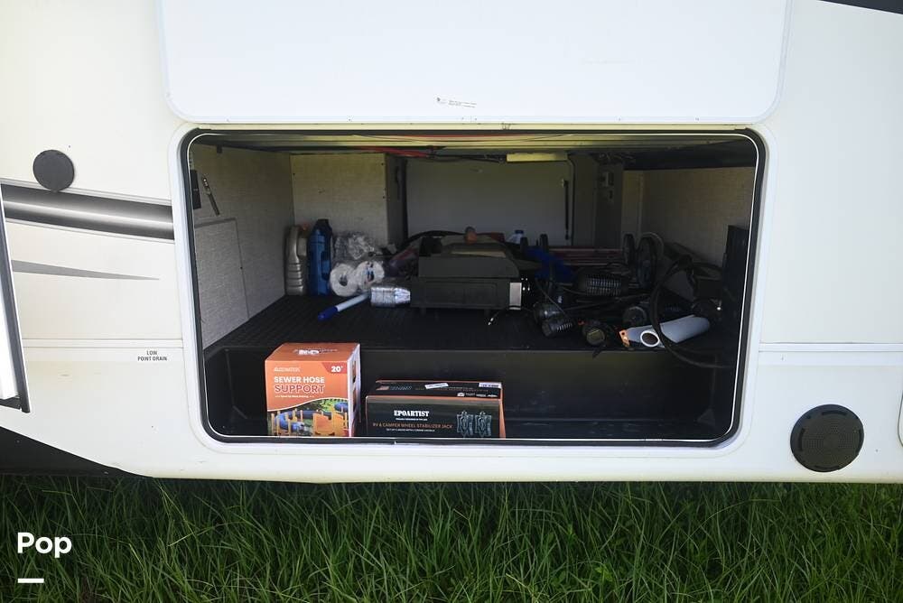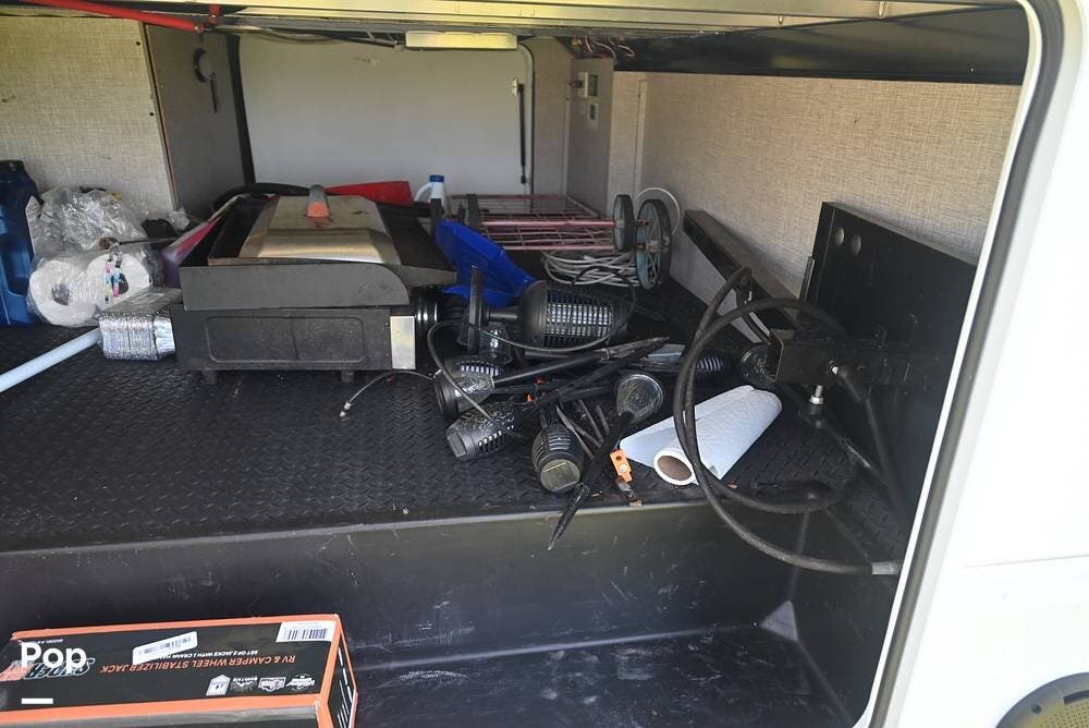 Seller add-ons included an Andersen gooseneck hitch, a Cummins portable generator. Generator- fits in the front outside storage compartment. Also some smaller items including trailer a movement stabilizer that helps to keeps the trailer steady while parked and a sewer hose holder.