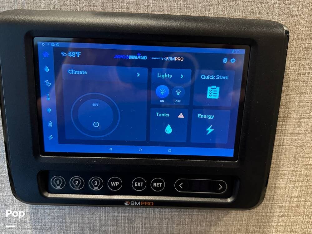 The included Luxury Package is equipped with Electric Auto-Leveling, the Jay Command "Smart RV" System that controls slides, lighting, and tanks from your phone/tablet, and Blackout Roller Shades.