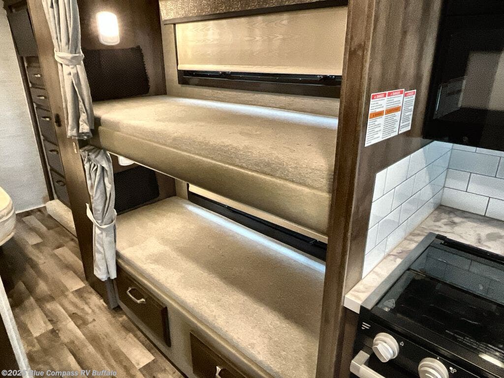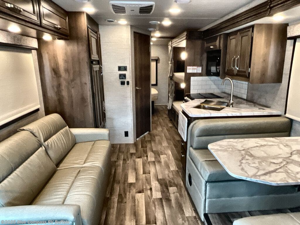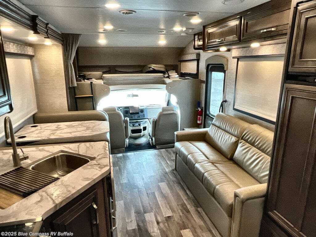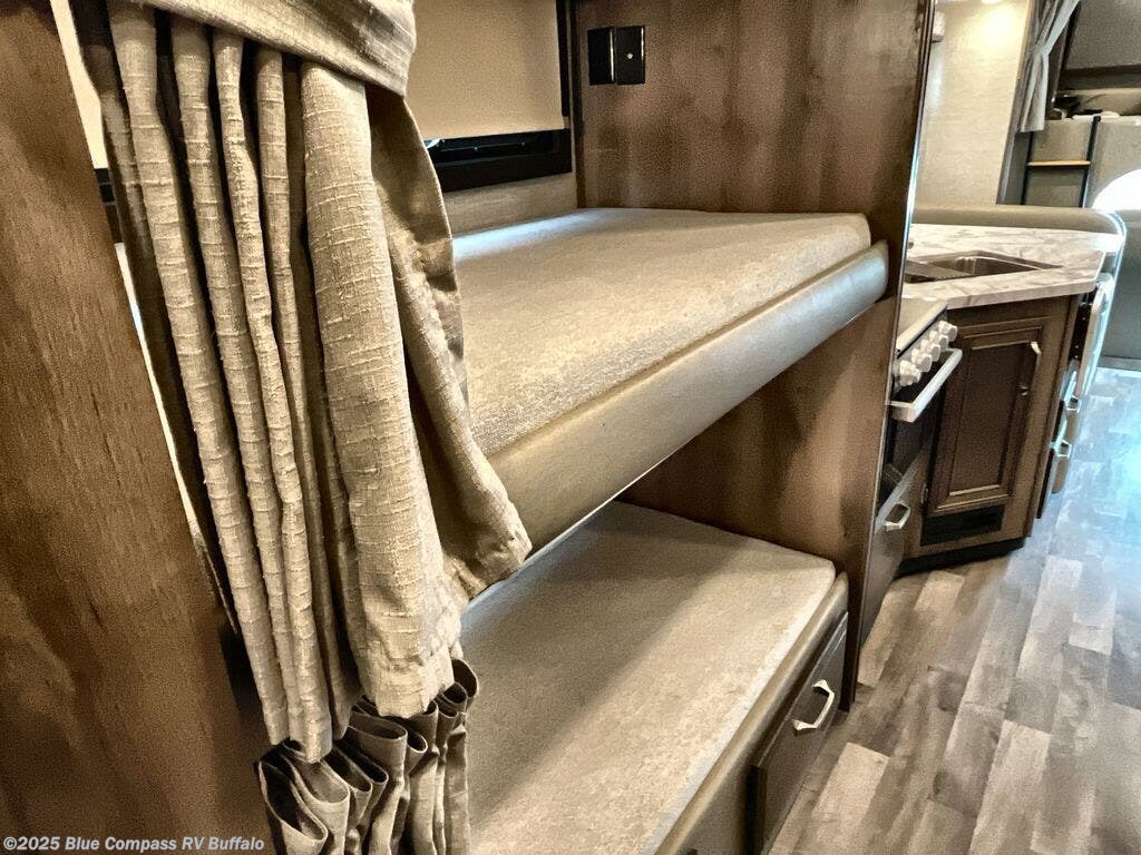 Bunk beds allow you to sleep seven to eight in this motorhome, so grab your friends and head out! The swivel captain's seats can become a part of the living area once you park, and you'll find additional seating on the sofa and booth dinette. This model includes an LED HD Smart Fire TV in the living room, as well as an LED TV in the bedroom for movie nights. If you'd rather be outside, the 18' power awning with LED lights will create an inviting space to visit with loved ones. When you've worked up an appetite, prepare a meal on the Furrion all-in-one cooktop and oven, or use the residential-size microwave. This model also includes plenty of storage space, including overhead compartments, a bedroom wardrobe, plus a kitchen pantry for snacks and dry goods!