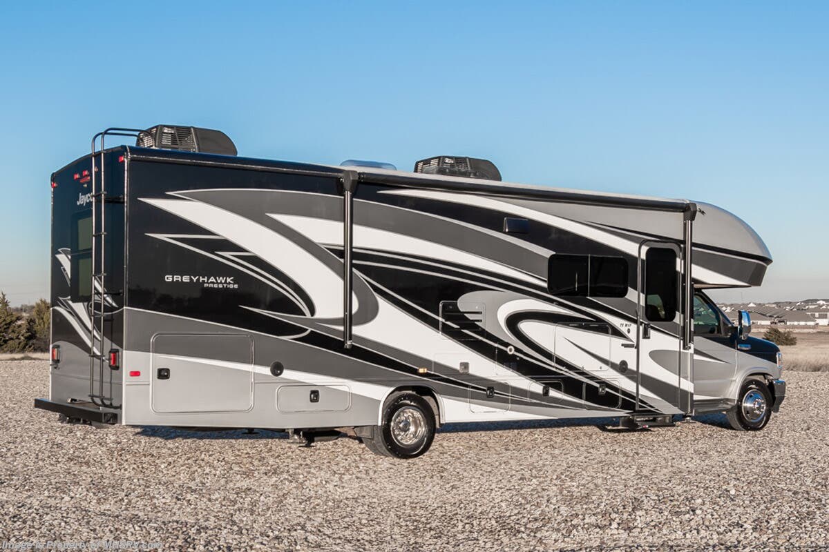 Used Jayco RV for sale – 2022 Jayco Greyhawk Prestige 29MV is approximately 29’ 0” in length with 44,040 Miles, 2 slides and features lippert stabilizer jacks, full body paint, 3 camera system, dual A/C's, gas generator, Ford E450 chassis, Ford gas engine, smart wheel, driver door, keyless entry, power windows, patio awning, black tank flush, exterior shower, exterior TV, fiberglass roof, ladder, solar, inverter, 7 foot ceiling, dual pane windows, multi-plex control panel, hardwood cabinets, 3 burner gas range with oven, theater seats, overhead loft and much more. For additional details on this unit and our entire inventory including brochures, window sticker, videos, photos, reviews & testimonials as well as additional information about Motor Home Specialist and our manufacturers please visit us at or call 800-335-6054 for our Texas location or 334-288-0331 for our Alabama location. At Motor Home Specialist, we DO NOT charge any prep or orientation fees like you will find at other dealerships. Read Thousands upon Thousands of 5-Star Reviews at and See What They Had to Say About Their Experience at Motor Home Specialist.