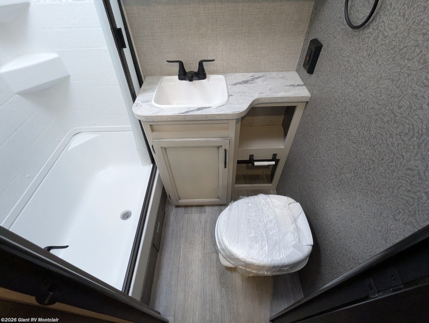 - Modern Amenities and Durability: Features air conditioning, 6 cu ft refrigerator, convection microwave, residential vinyl flooring, LED lighting, Stronghold VBL vacuum-bonded walls, Dexter rubber torsion axle, 16" off-road tires, and solar prep for reliable camping.