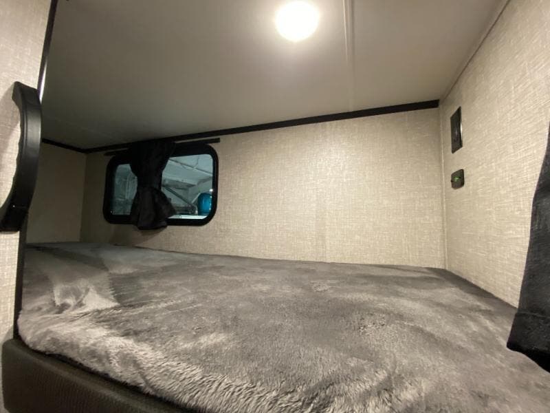 The Used 2022 Jayco Jay Feather Micro 171BH is a lightweight, easy-to-tow travel trailer ideal for families and weekend campers. It features comfortable sleeping for up to 5 with a front queen bed, rear bunk beds, and a convertible dinette, plus a functional kitchen with 12?V refrigerator and two-burner cooktop. Built with Jayco’s quality construction, ample storage, a full bathroom, and modern conveniences like a power awning and efficient climate control, the 171BH blends practicality and comfort in a compact package for memorable road trips and outdoor adventures.