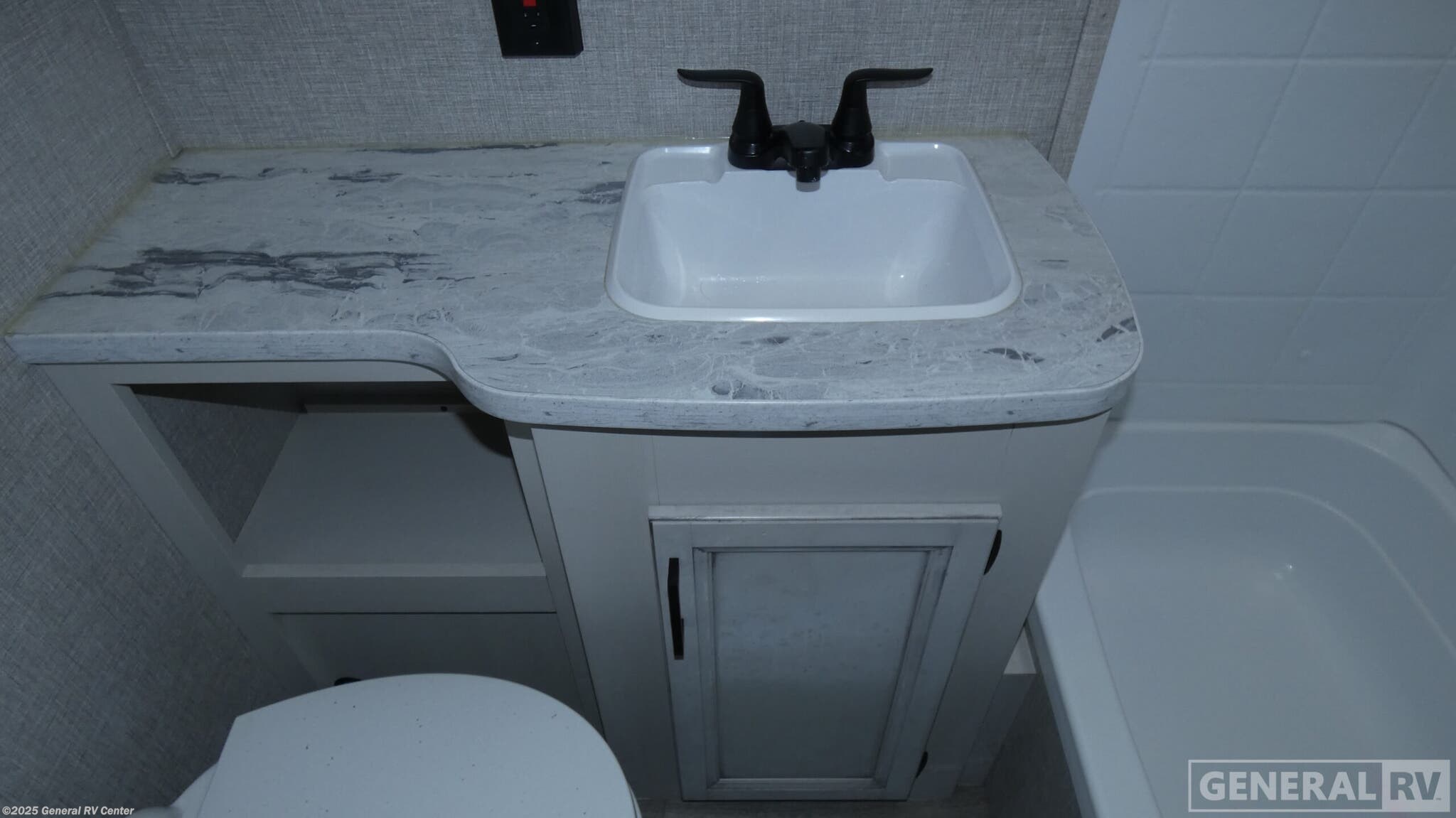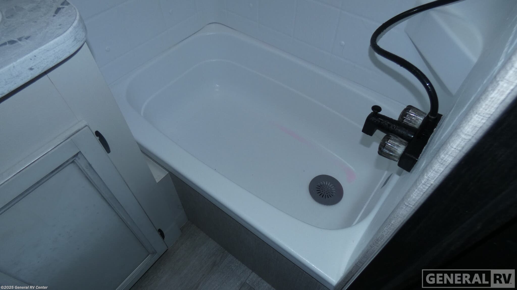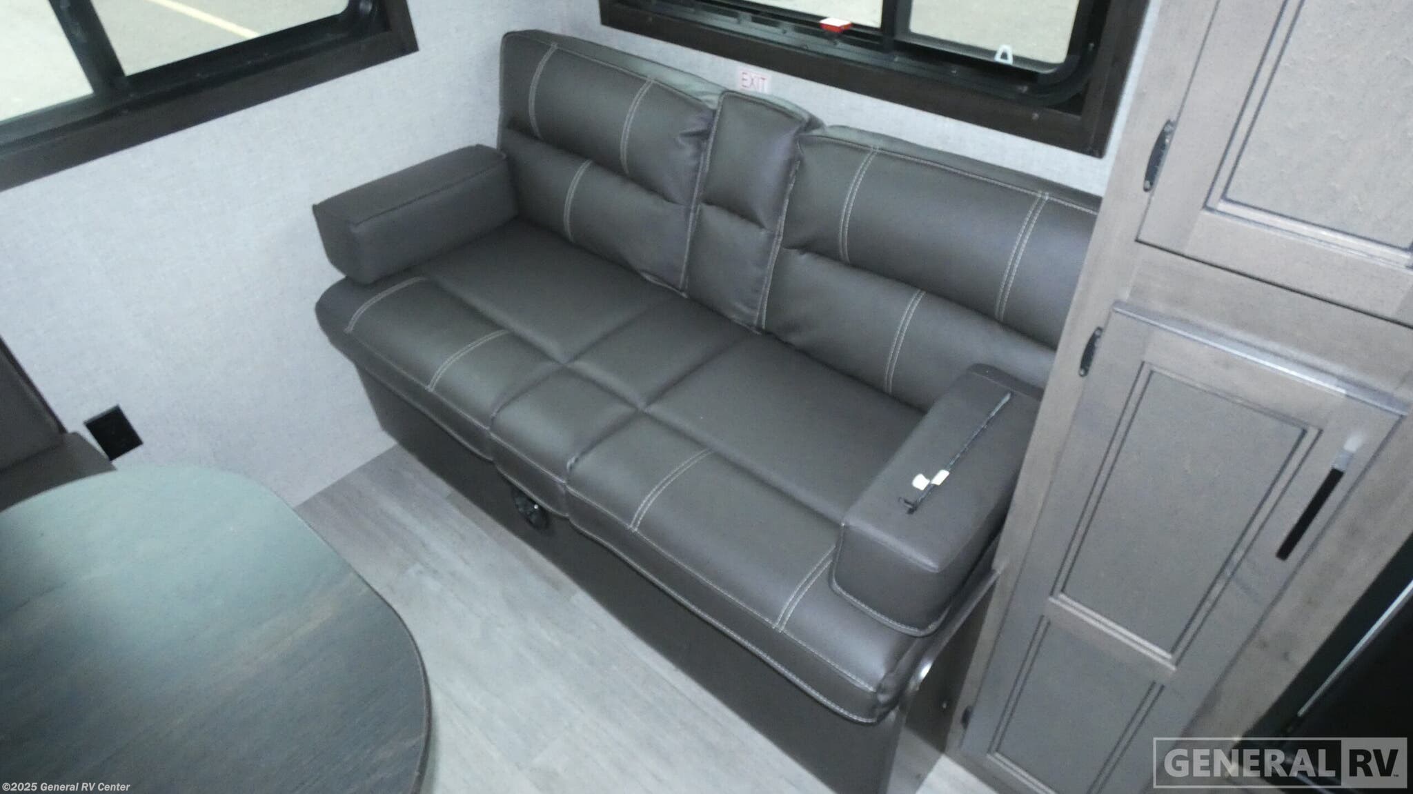 Walk-Around Queen Bed Booth Dinette Jackknife Sofa Full Bathroom Power Tongue Jack When you are ready for some R, head out to the campgrounds with this trailer in tow! You can easily setup the 16' power awning and relax outside or inside at the booth dinette or jackknife sofa. The cook can make meals using the three-burner range and microwave, and the 6 cu. ft. refrigerator will hold your cold items. There is a pantry for your snacks and dry goods, giving you even more storage. The full bathroom includes a tub/shower and counter space for your toiletries, and the front queen bed offers two sides with wardrobes, and a shelf for more items.