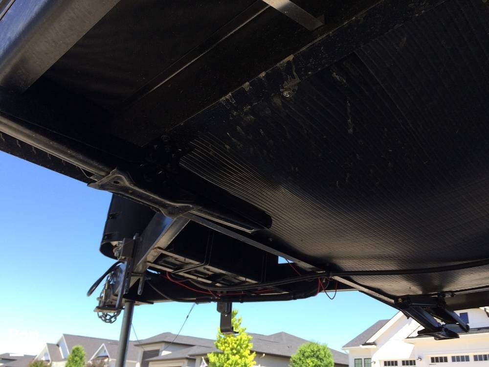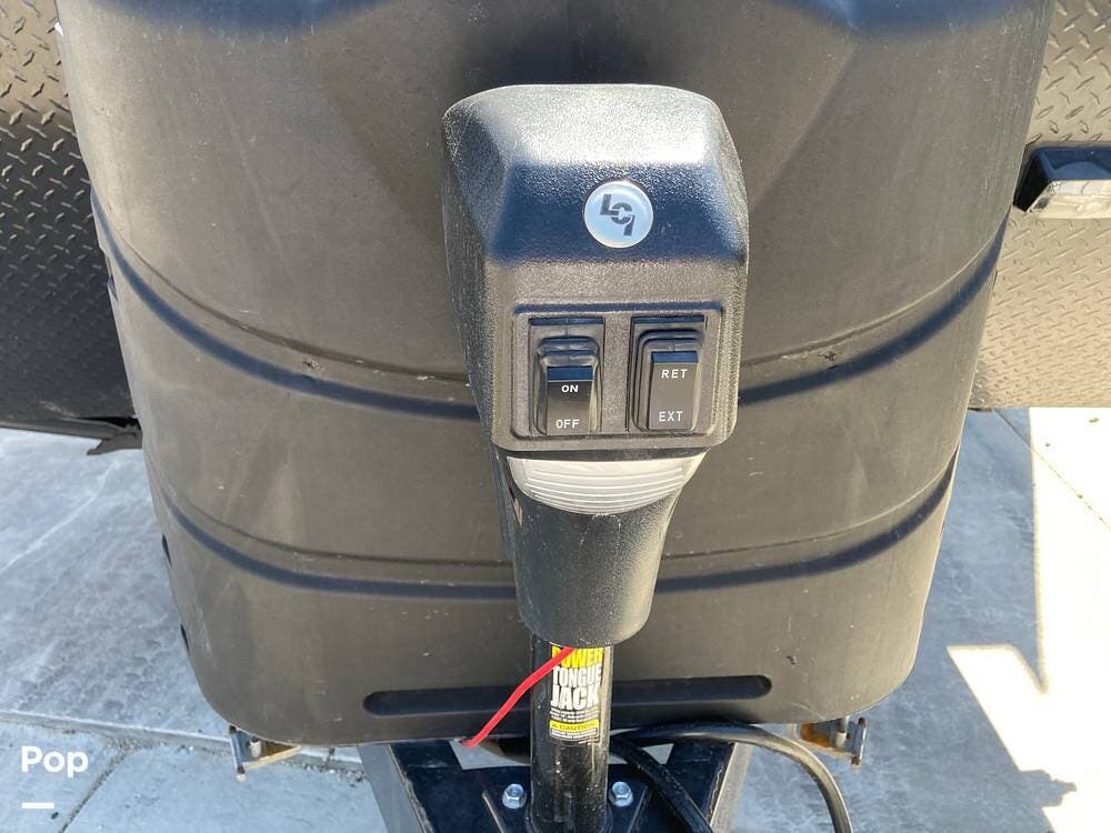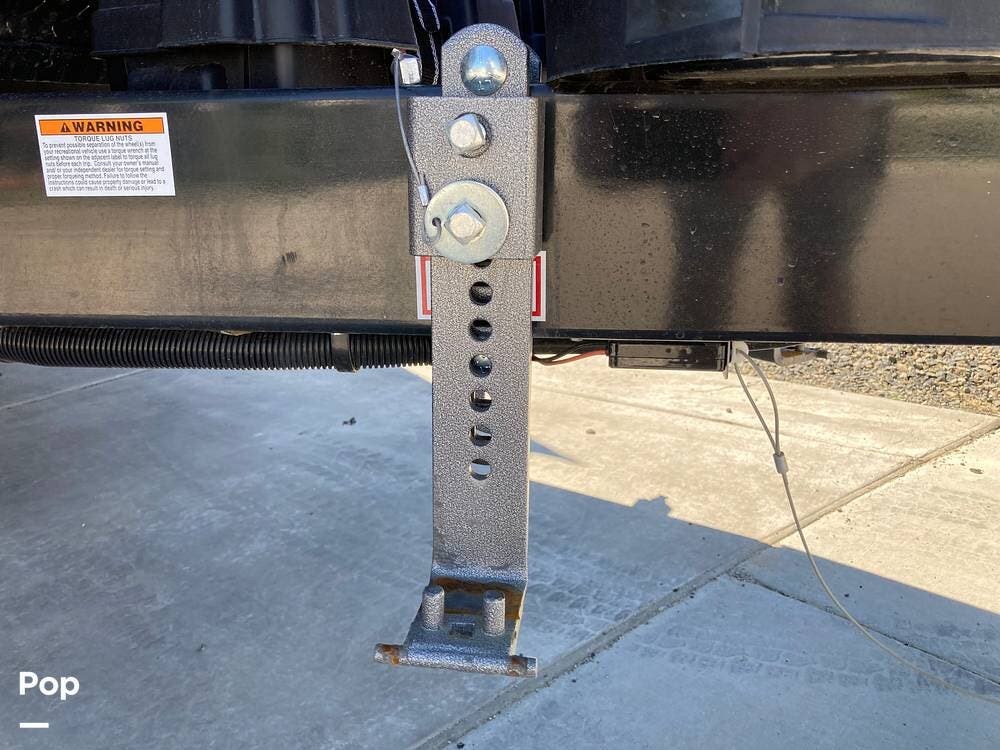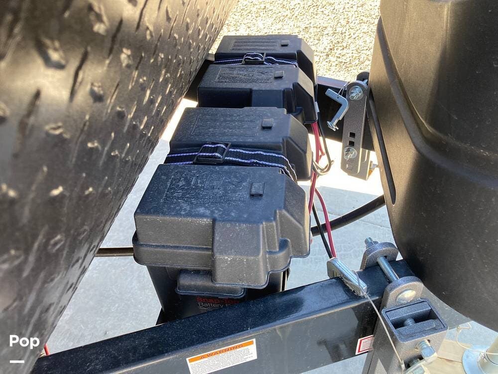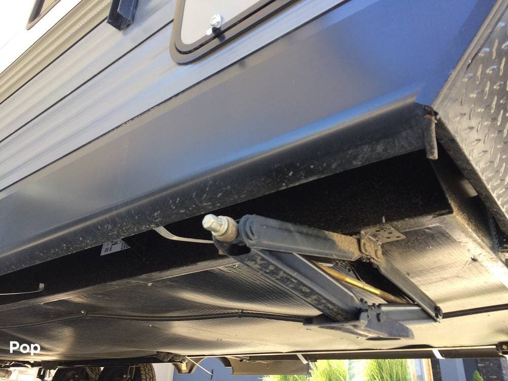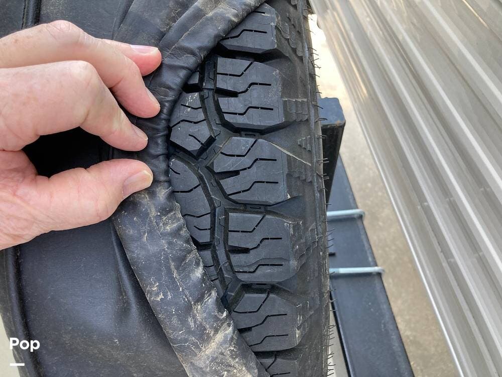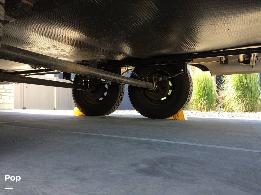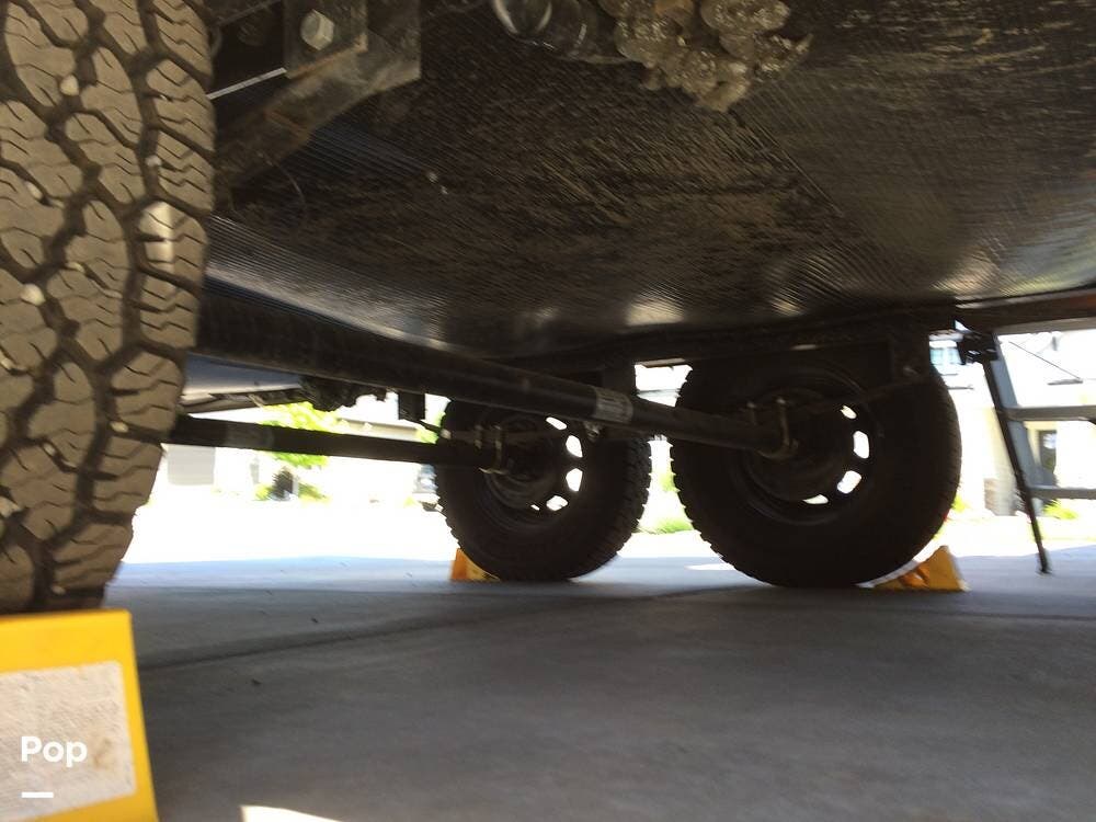 There's an electric hitch stand, Husky stabilizer bars, two house batteries, a new spare tire, and a roof access ladder.