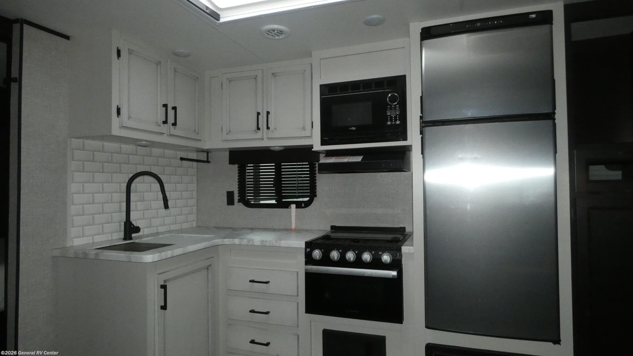 A lot of fun can be had in this Jay Flight travel trailer! There are double-size bunks to add to the sleeping capacity without taking up too much interior space, and the jackknife sofa is a handy piece of furniture that serves as a lounge area and a bed. The queen-size bed is hidden away in the private bedroom, and the bedroom also contains the second exterior entry door for you to come and go as you please. A large slide makes the main living area spacious, so you can work freely in the kitchen without standing on top of those who are sitting on the furniture. Check out the #1-selling Jayco Jay flight travel trailer! These trailers are built upon I-Class™ cambered structural steel I-beams and a fully integrated A-frame. They have axles with electric, self-adjusting brakes and easy-lube hubs to make your journeys smooth, and the Magnum Truss roof system will withstand many years and types of travel. You'll have large exterior downspouts, a front diamond plate, four stabilizer jacks, and a friction-hinge entry door with shade-prep window. The interior is where you'll find great comfort and modern design.