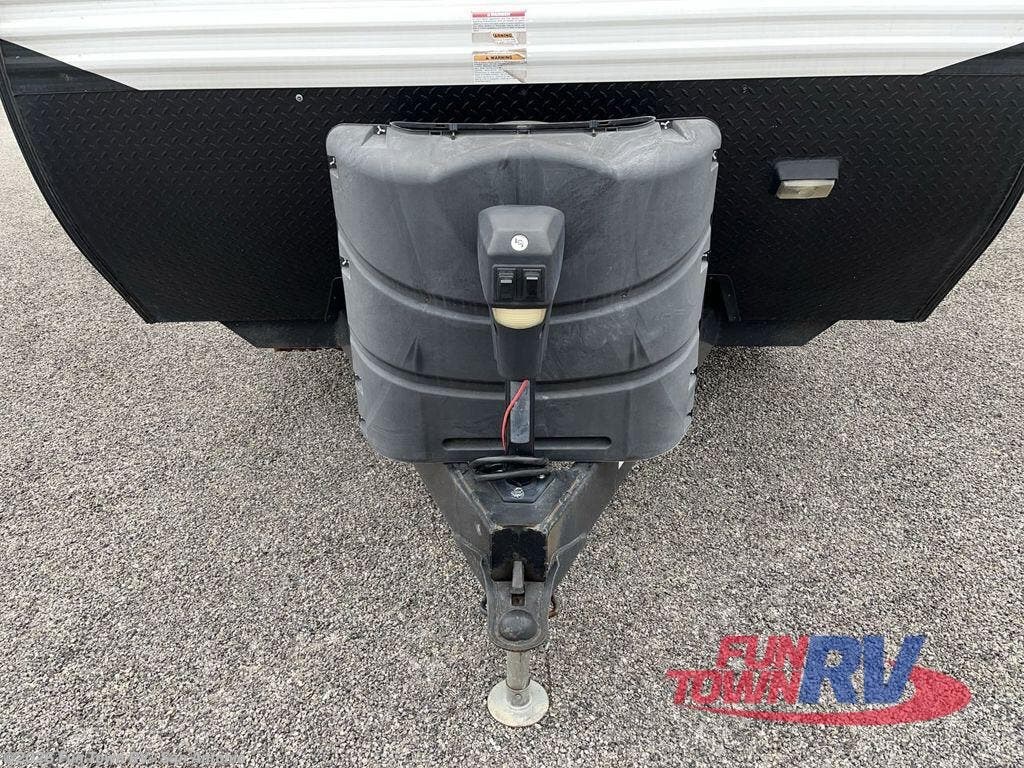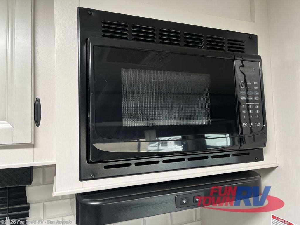 This Jay Flight travel trailer has two private sleeping areas, a private bedroom up front and a private bunkhouse in the back. The bunkhouse even has a slide out for some added space. Two entry doors get you into this trailer quickly from the front or back, and you will also have two kitchens on this unit, one inside and one outside. The entertainment center makes nighttime movie watching easy, and you can always heat up a snack quickly in the microwave. The bathroom skylight will bring in more sunlight as you get ready, and the tub/shower will help you get clean.