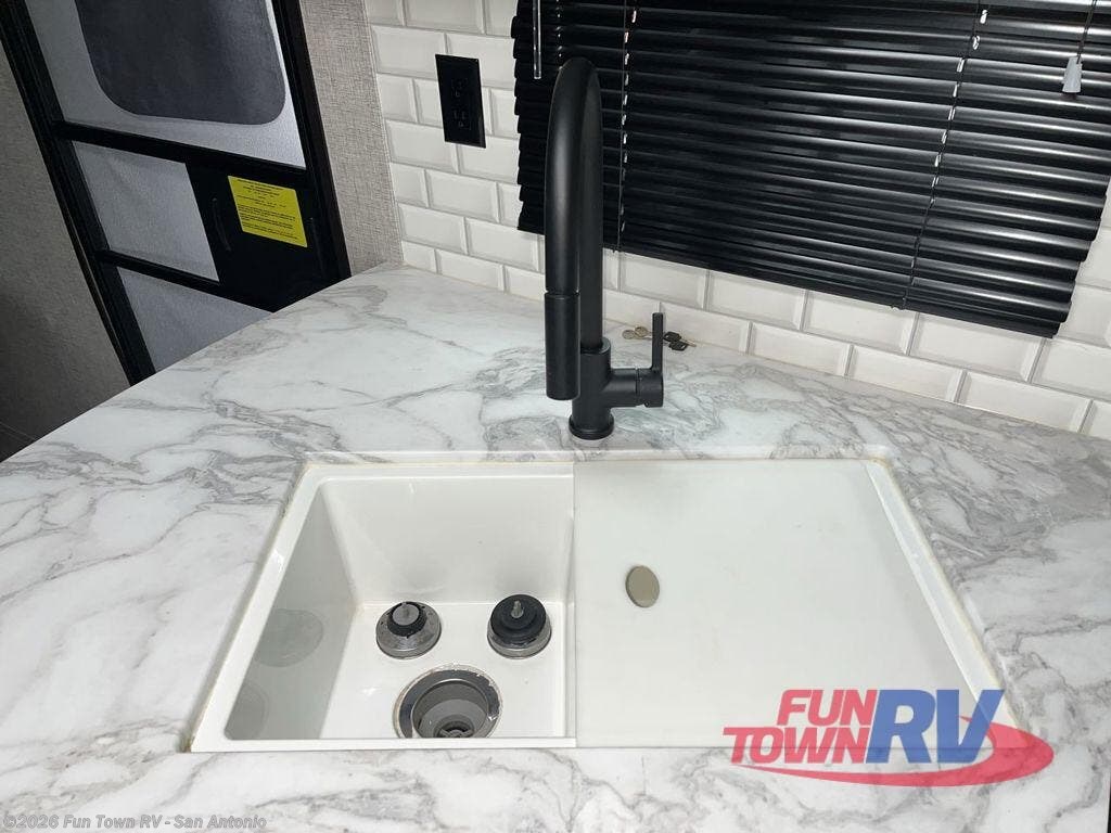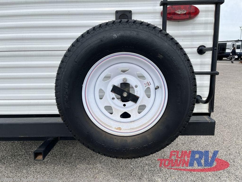 Check out the #1-selling Jayco Jay flight travel trailer! These trailers are built upon I-Class™ cambered structural steel I-beams and a fully integrated A-frame. They have axles with electric, self-adjusting brakes and easy-lube hubs to make your journeys smooth, and the Magnum Truss roof system will withstand many years and types of travel. You'll have large exterior downspouts, a front diamond plate, four stabilizer jacks, and a friction-hinge entry door with shade-prep window. The interior is where you'll find great comfort and modern design. There are residential-style kitchen countertops, solid hardwood cabinet doors, a premium multimedia sound system, a full-height kitchen backsplash, a kitchen skylight with shade, and a deluxe bedspread with pillows.