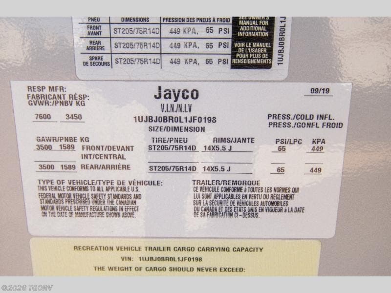 Request More Info on this 2020 Jayco Jay Feather 27BHB Offered for sale by TGORV
