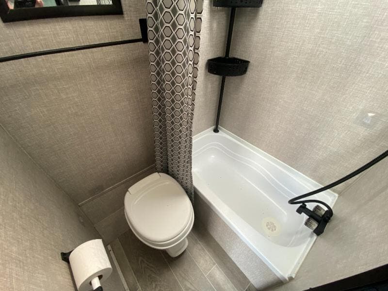 Gain some freedom to travel with this Jay Flight SLX 7 travel trailer! You can rest comfortably each night on an RV queen bed that can be sectioned off into a semi-private bedroom with a privacy curtain. There is a private bathroom with a tub/shower and toilet so that you can stay clean, and the kitchen has a two-burner range to keep you fed. Outside, there is a 10' power awning to protect you from too much sun, and you can also store extra gear in the exterior storage compartment.