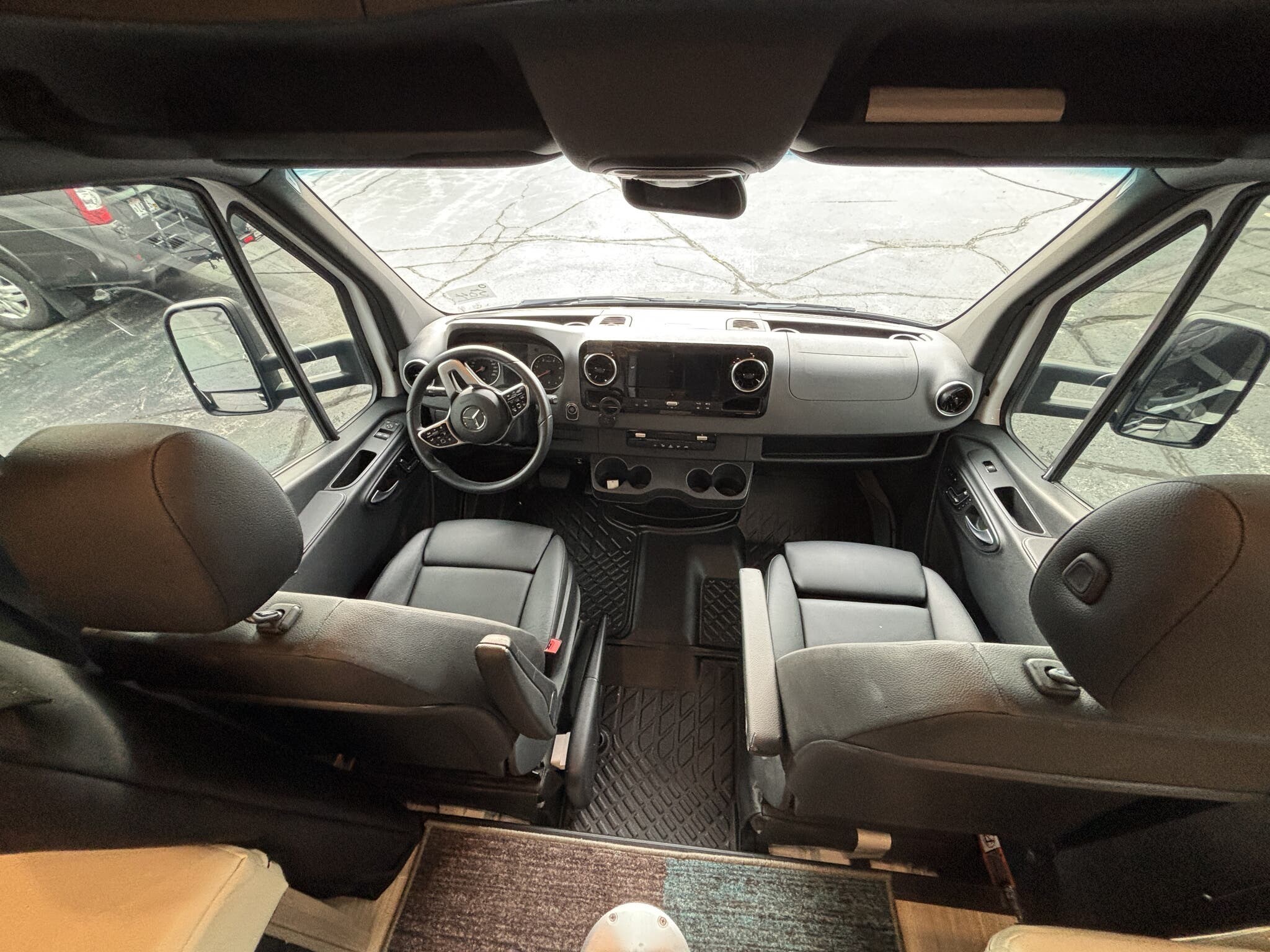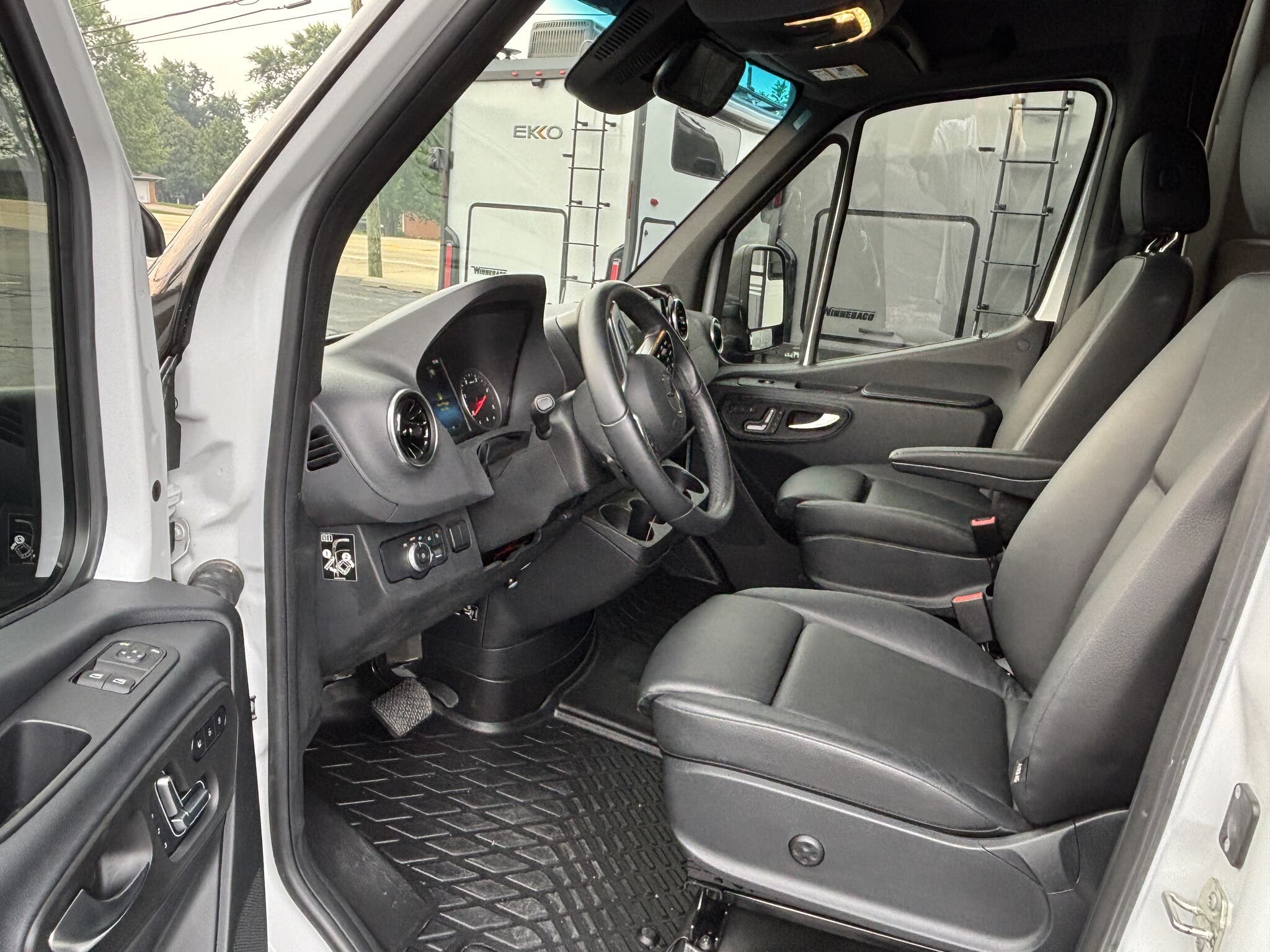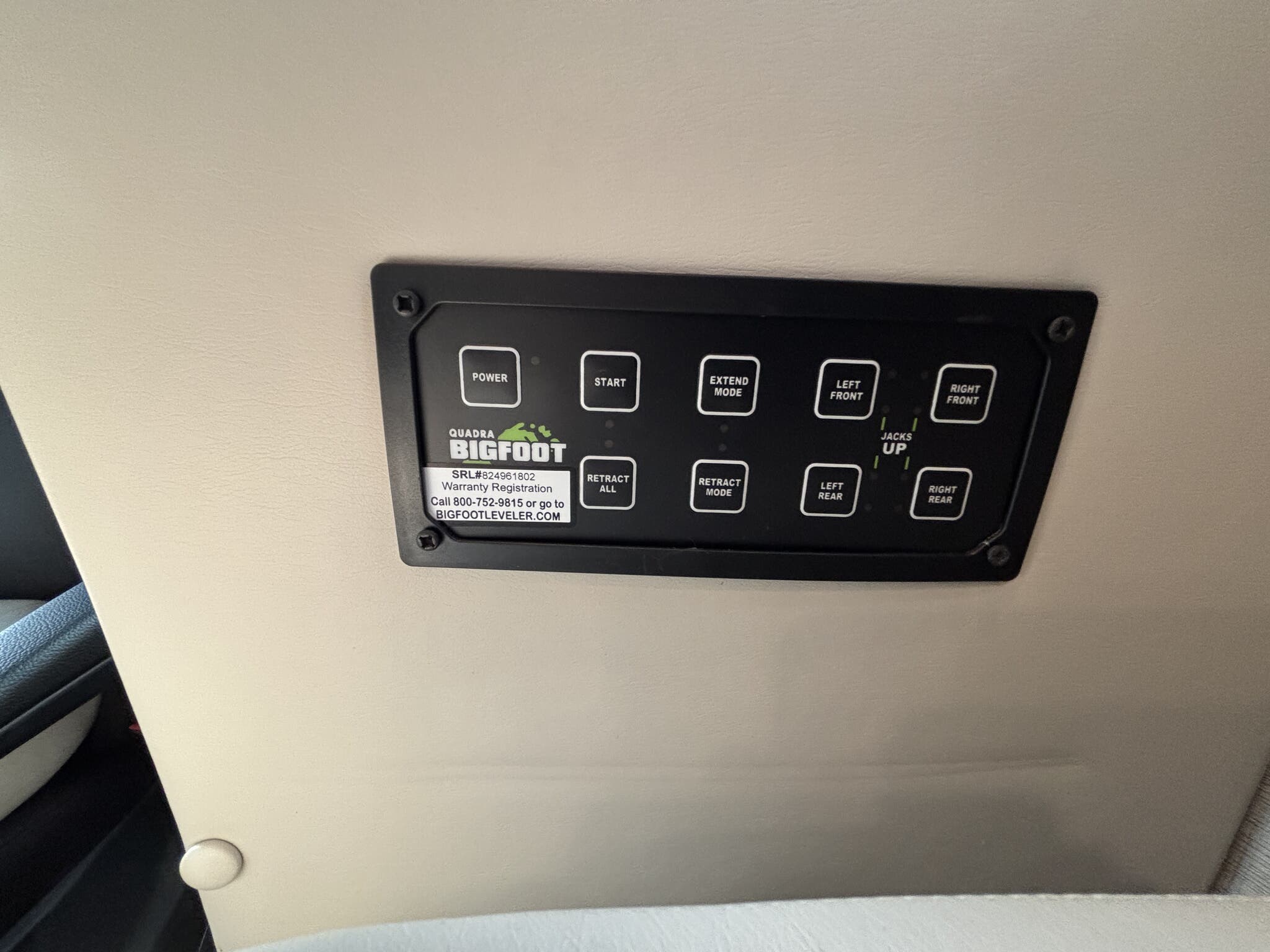 This unit is equipped with -Trailer hitch - Power awning _ Micro convection oven - 7 cu ft ref/freezer - 2 burner gas range - 24" tv TV in dining area - 36" tv in back living area - Ducted A/C - Rear monitor - Mercedes navigation - Inverter - power roof ventilator - Aluminum wheels - Big Foot automatic leveling system