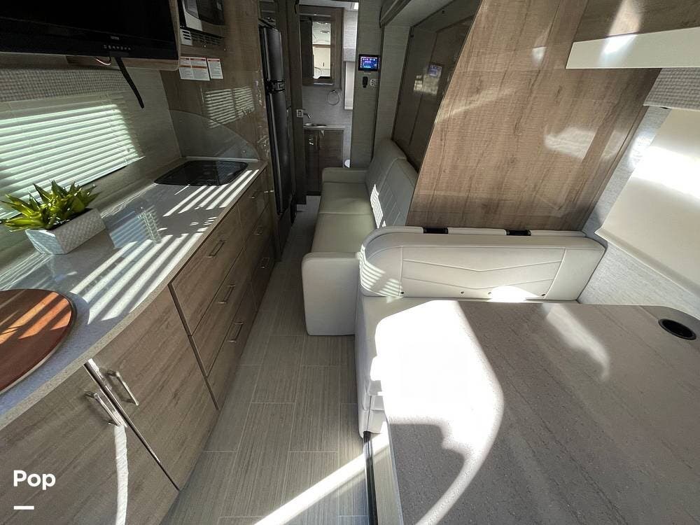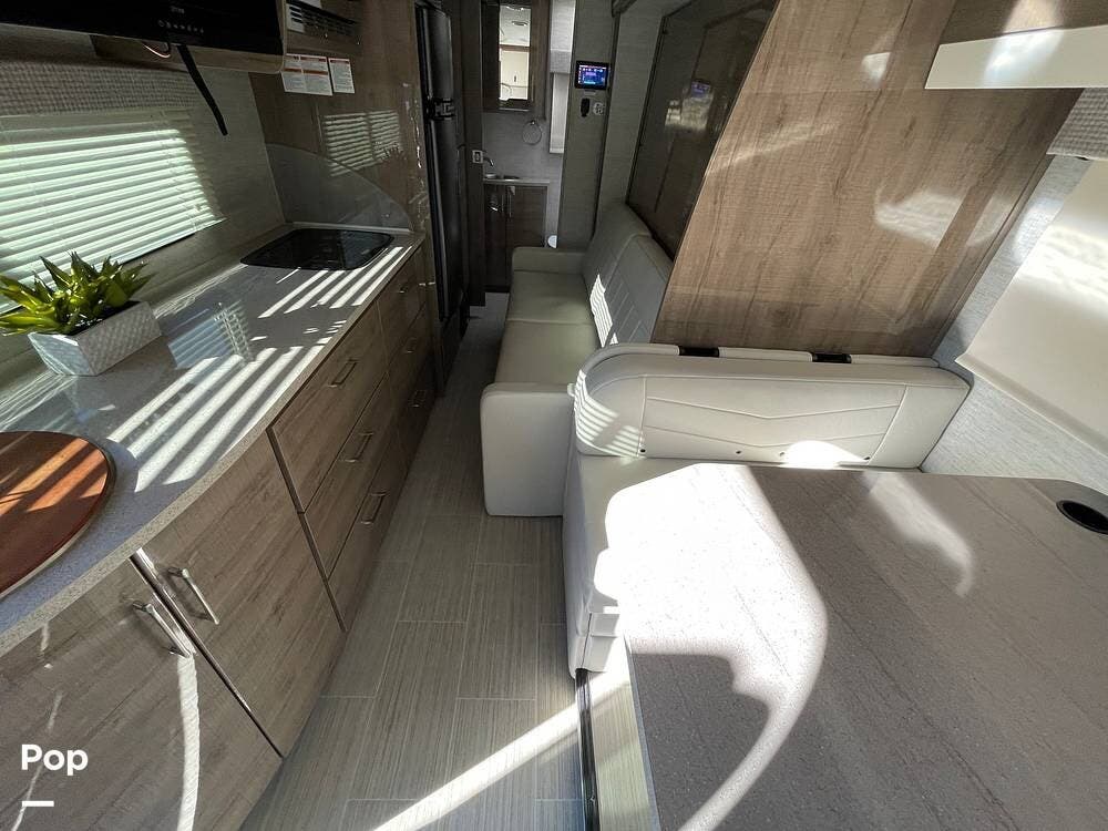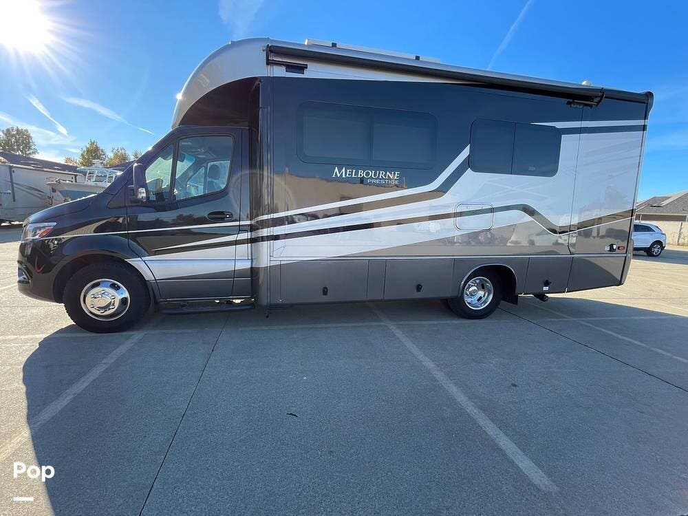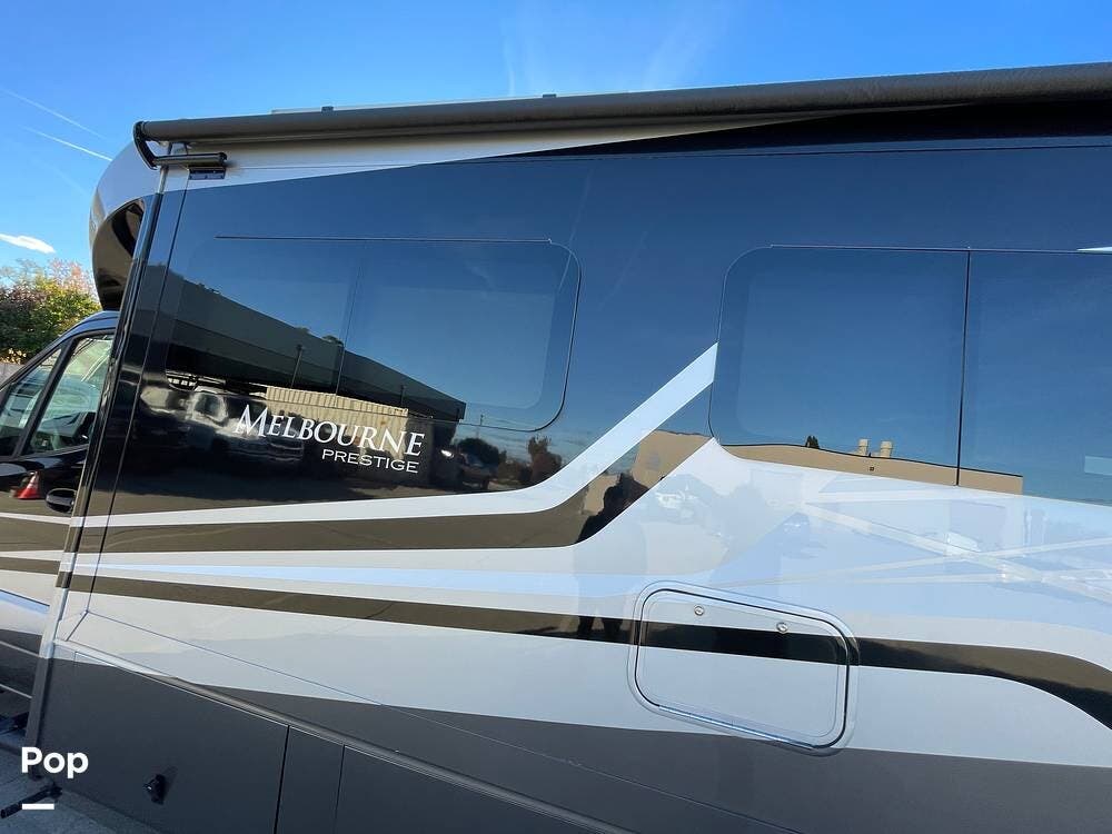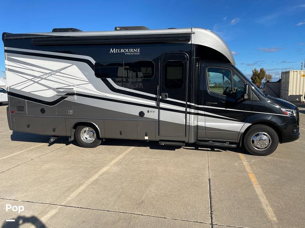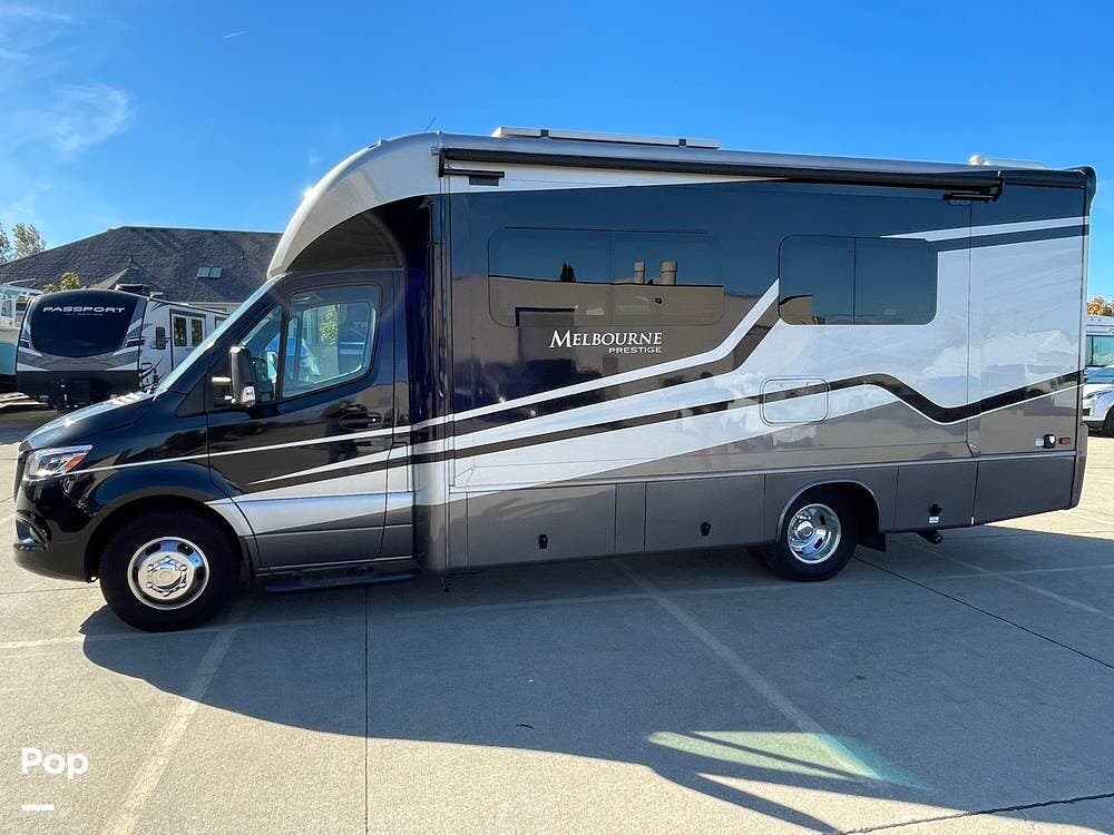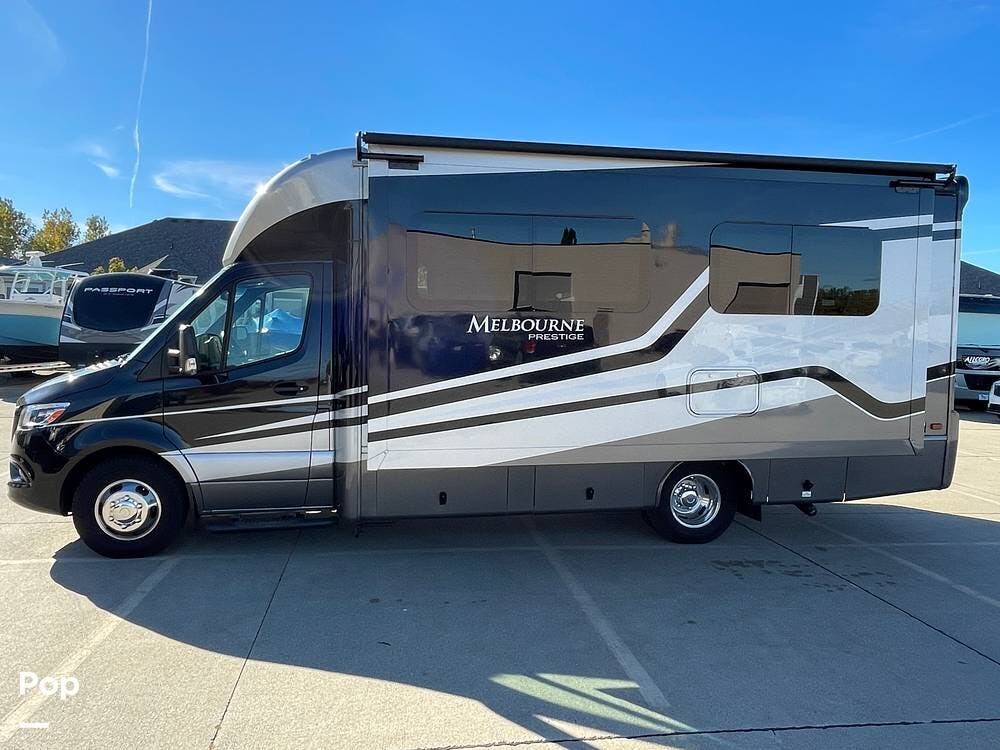 This 2022 Melbourne Prestige 24RP has been used lightly and has very low mileage. It is nicely appointed with a comfortable dinette sleeper, full kitchen, Murphy bed sofa, and full bathroom. It is also equipped with a diesel generator, hydraulic levelers, and lots of storage.