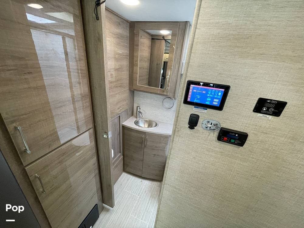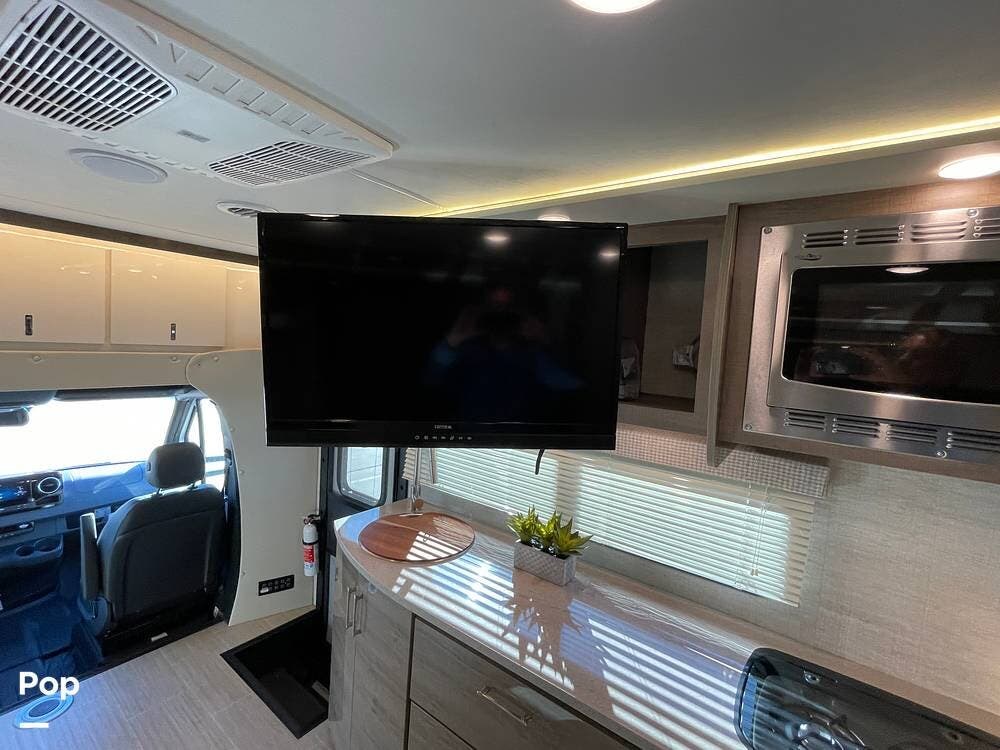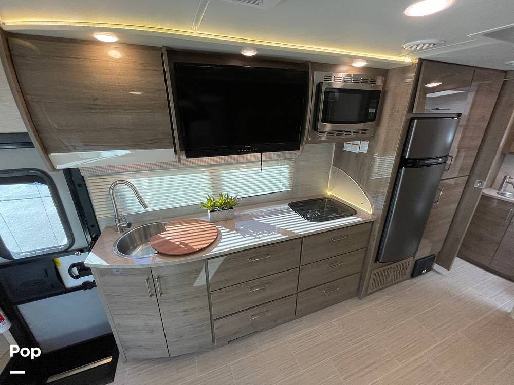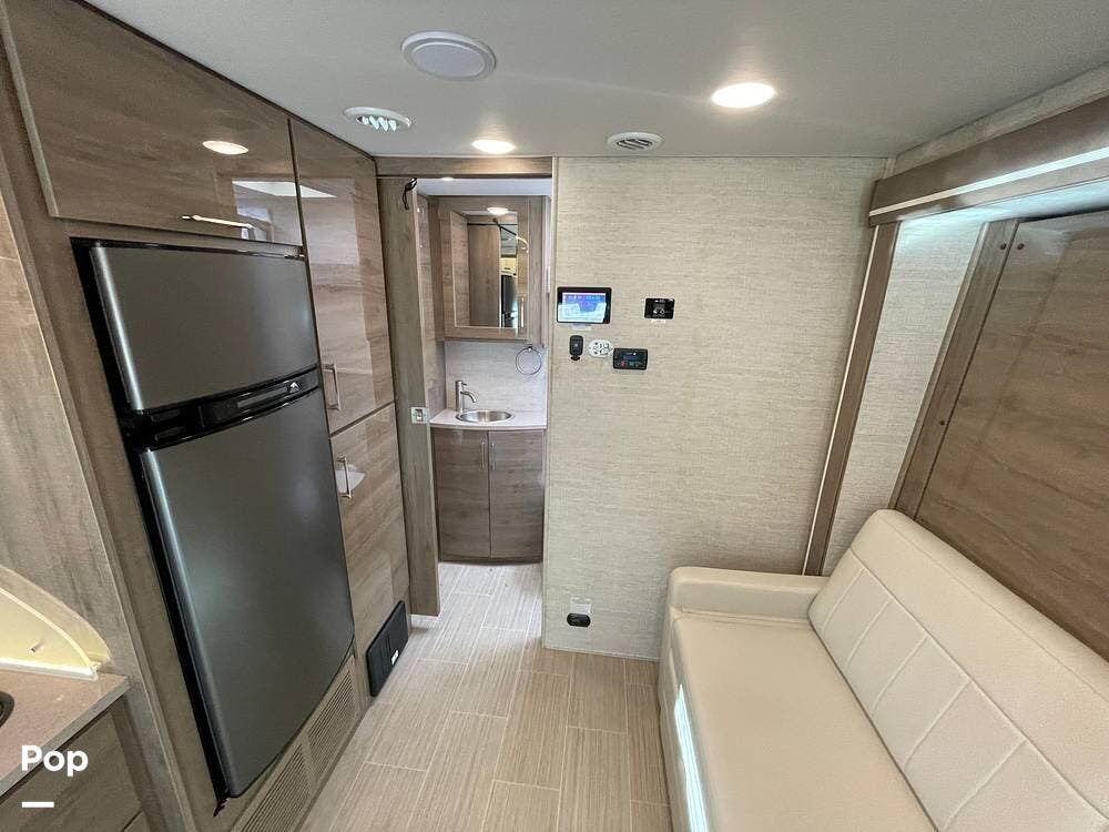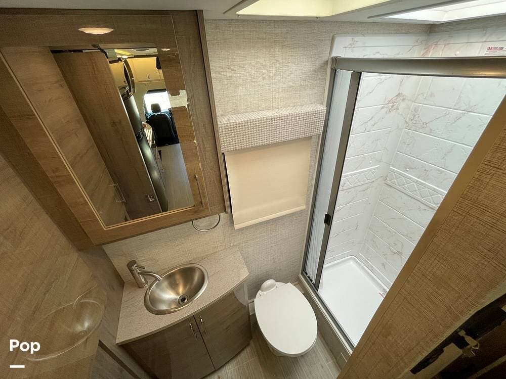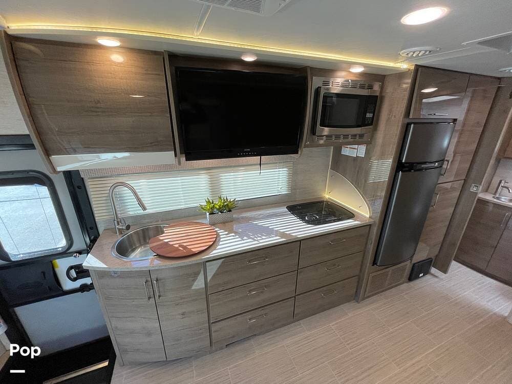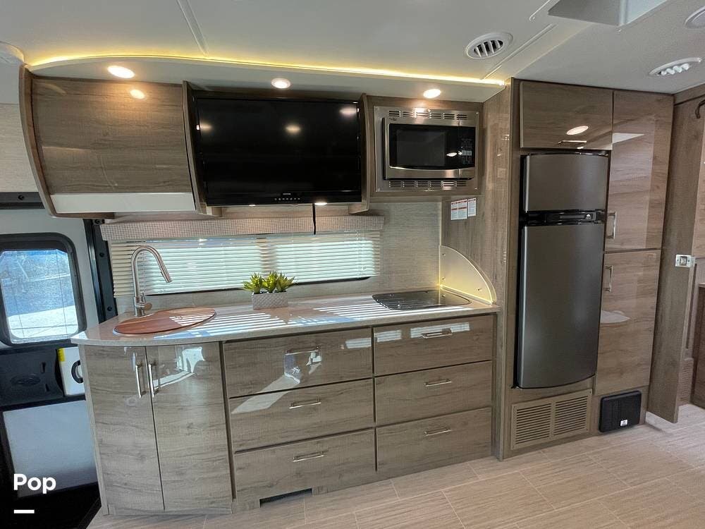 This 2022 Melbourne Prestige 24RP has been used lightly and has very low mileage. It is nicely appointed with a comfortable dinette sleeper, full kitchen, Murphy bed sofa, and full bathroom. It is also equipped with a diesel generator, hydraulic levelers, and lots of storage.