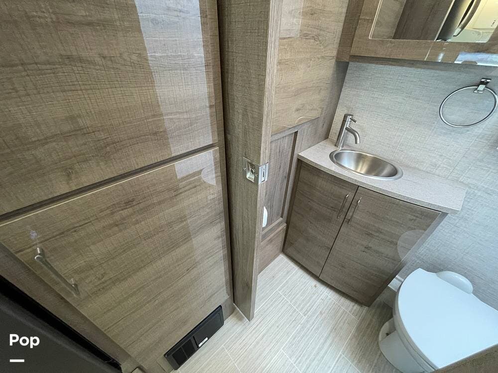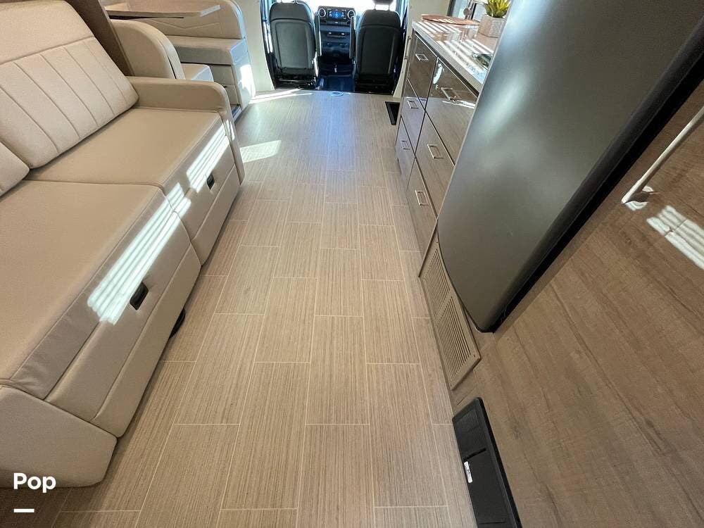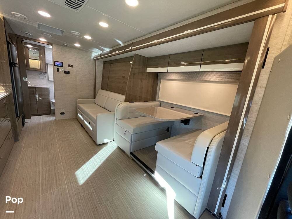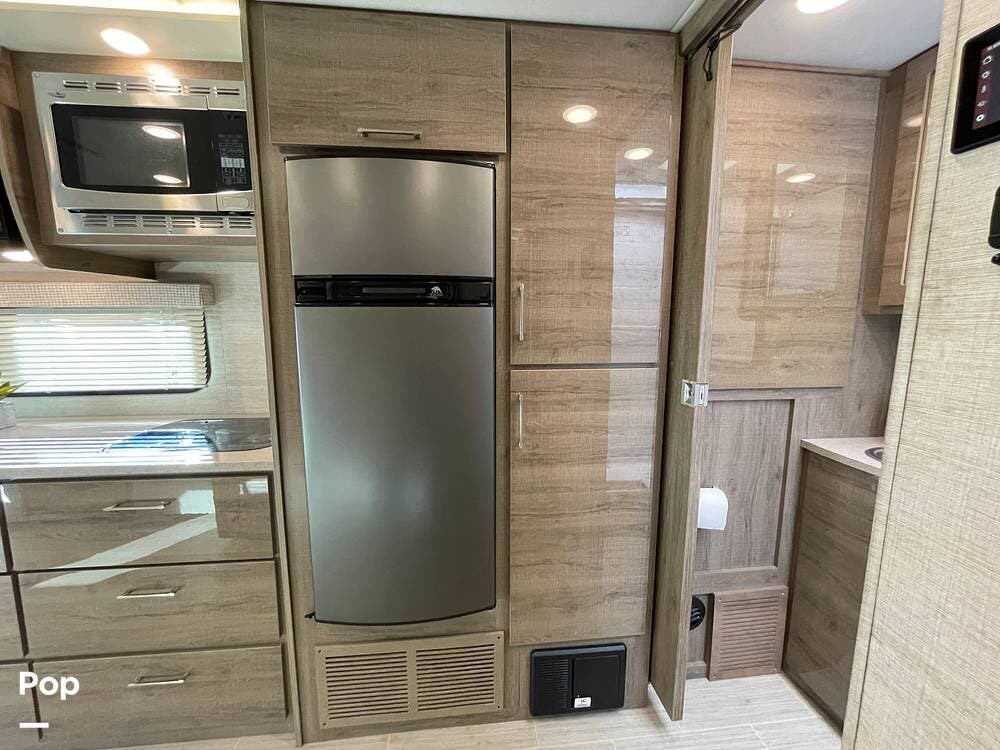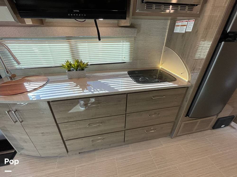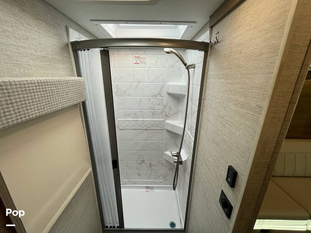 This 2022 Melbourne Prestige 24RP has been used lightly and has very low mileage. It is nicely appointed with a comfortable dinette sleeper, full kitchen, Murphy bed sofa, and full bathroom. It is also equipped with a diesel generator, hydraulic levelers, and lots of storage.