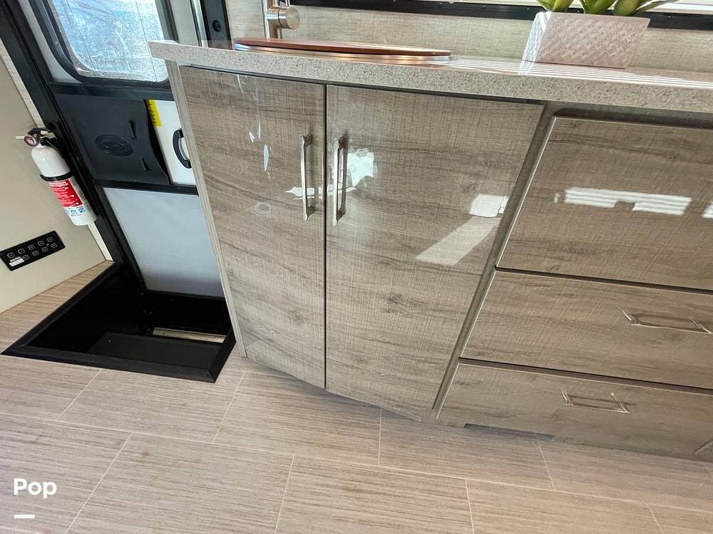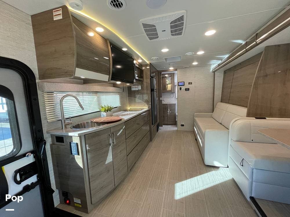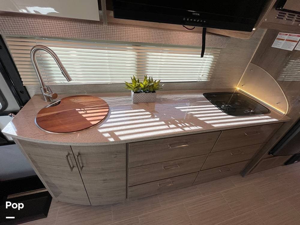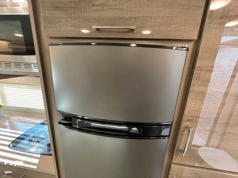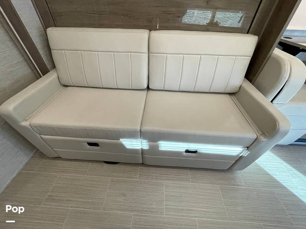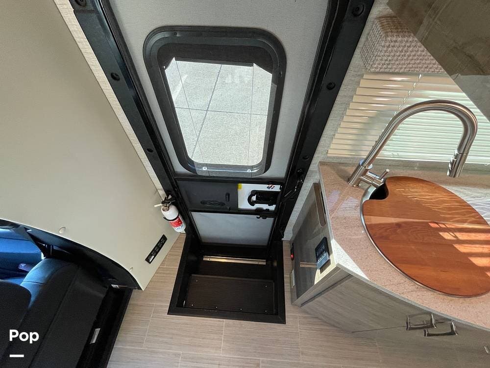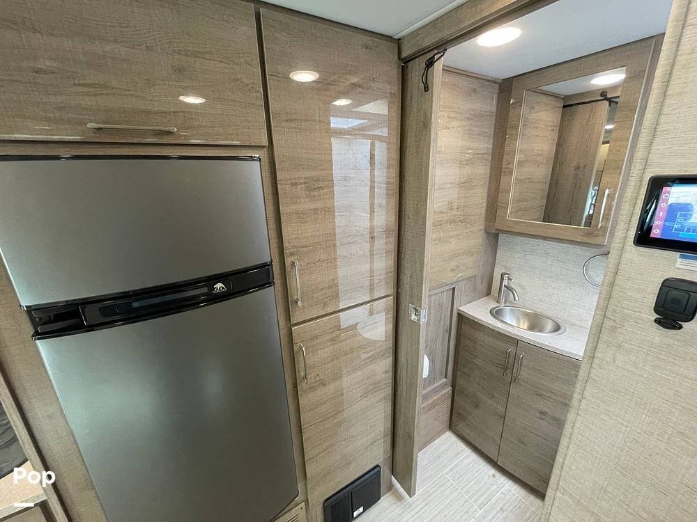 This 2022 Melbourne Prestige 24RP has been used lightly and has very low mileage. It is nicely appointed with a comfortable dinette sleeper, full kitchen, Murphy bed sofa, and full bathroom. It is also equipped with a diesel generator, hydraulic levelers, and lots of storage.