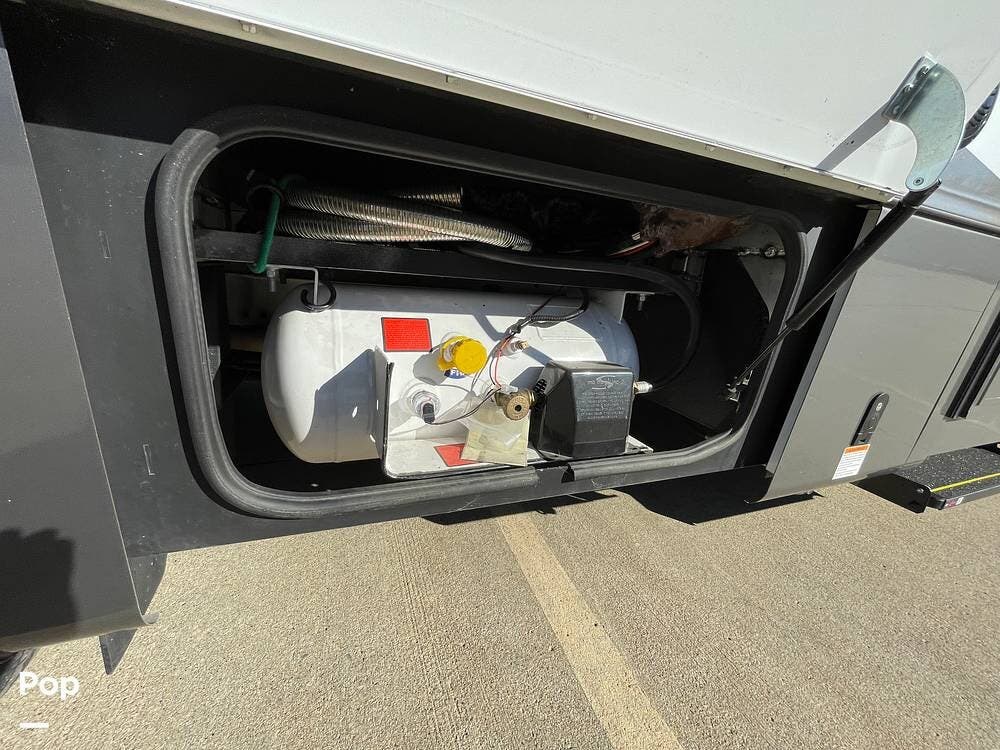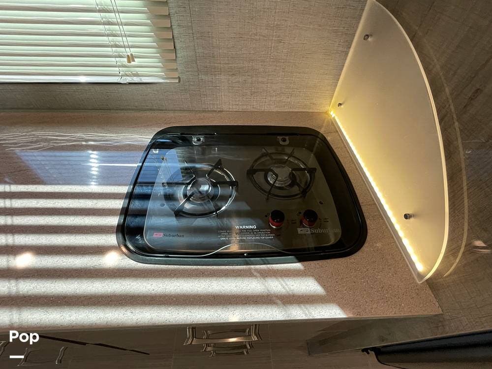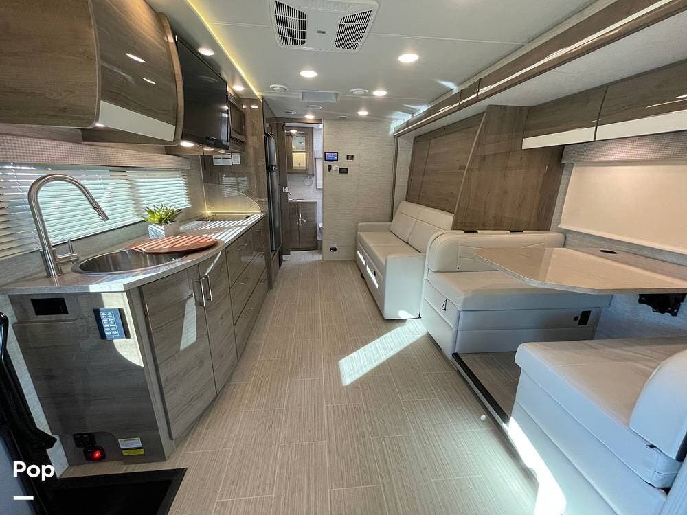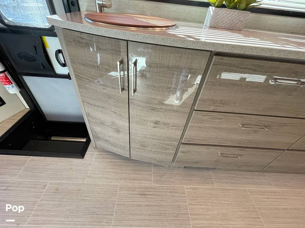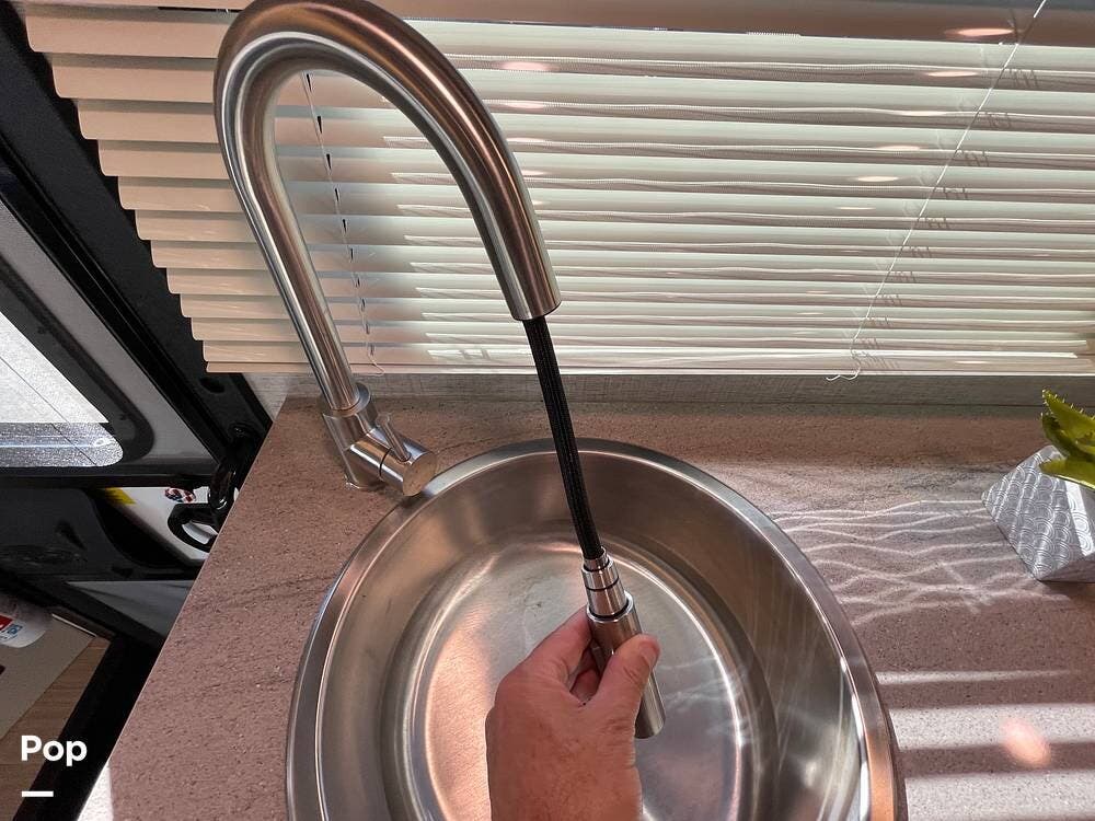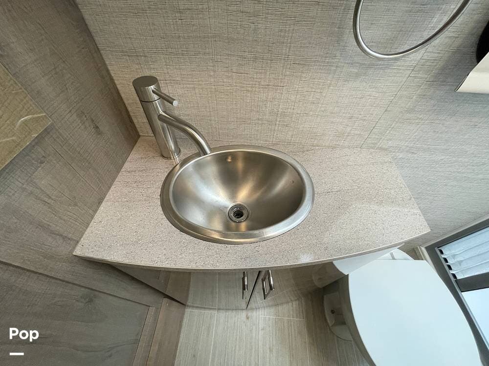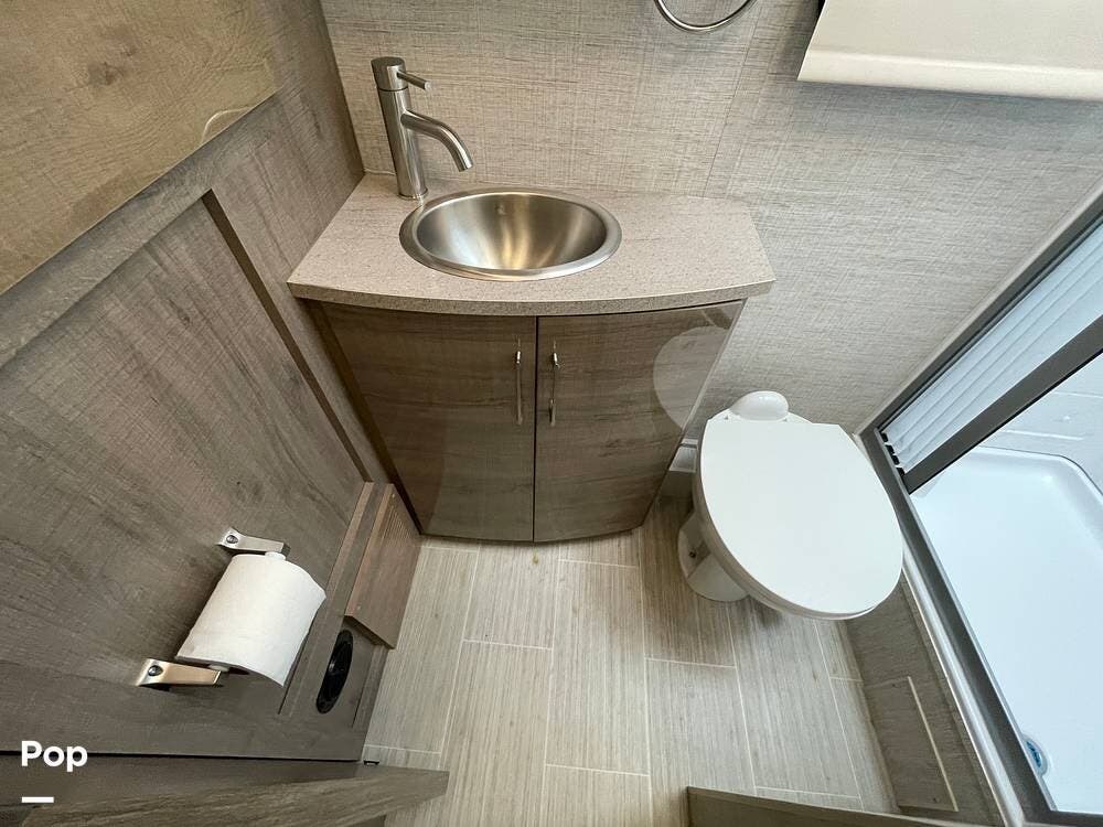This 2022 Melbourne Prestige 24RP has been used lightly and has very low mileage. It is nicely appointed with a comfortable dinette sleeper, full kitchen, Murphy bed sofa, and full bathroom. It is also equipped with a diesel generator, hydraulic levelers, and lots of storage.