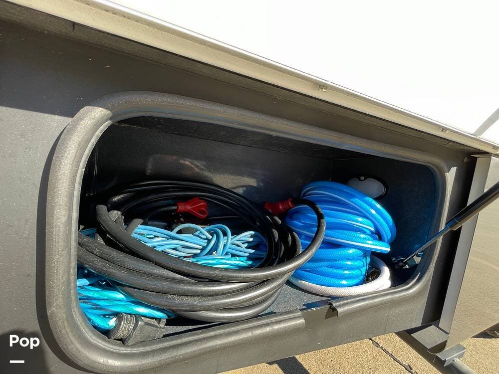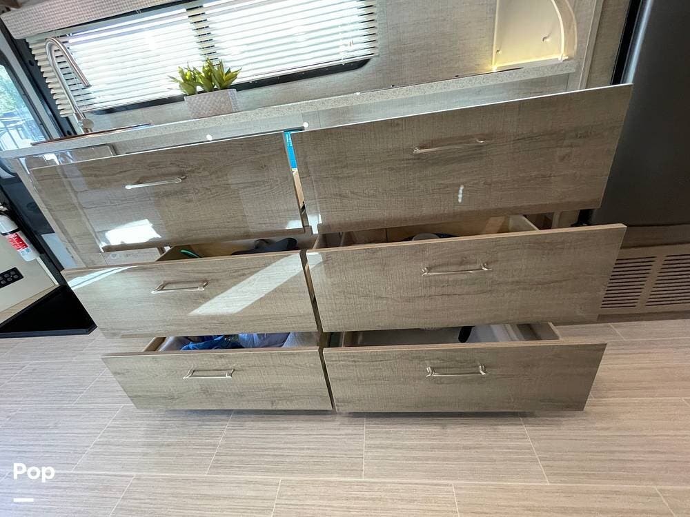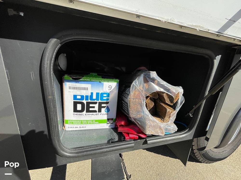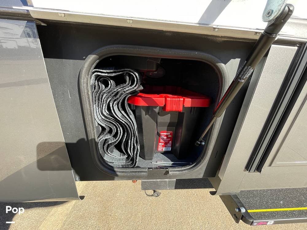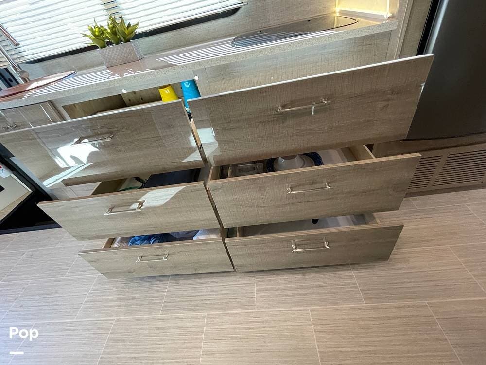 This model is configured without the cab-over bunk and replaced with three large storage compartments with pull-out drawers.