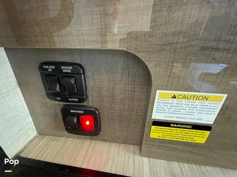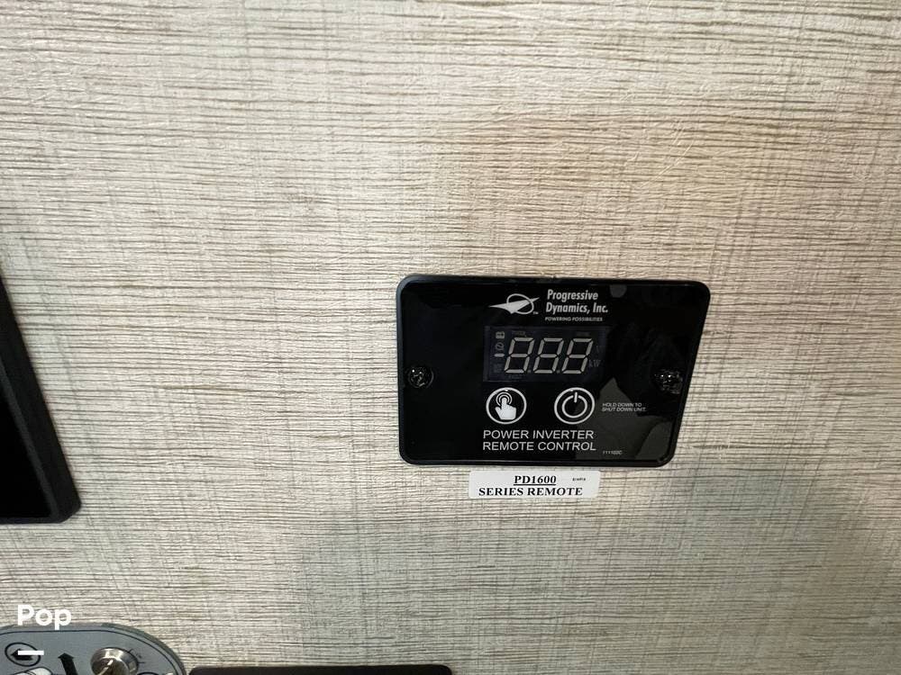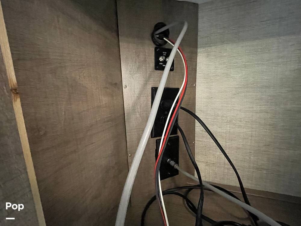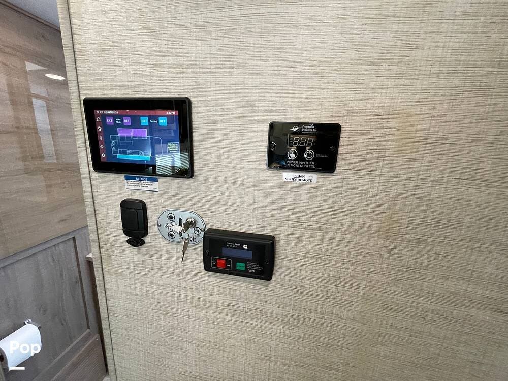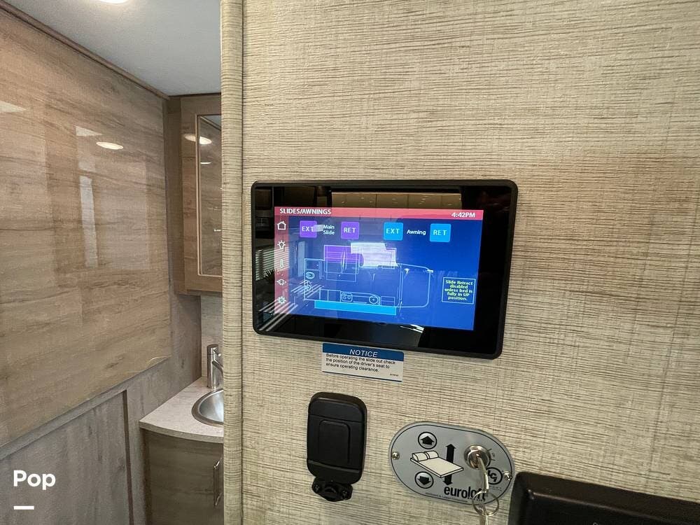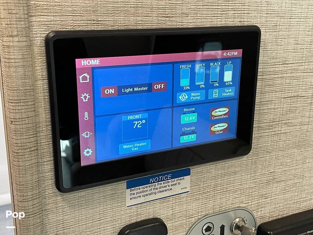 The controls for the inverter, generator, Murphy bed, and JAYCOMMAND system are on the back wall. The JAYCOMMAND system allows you to control the elements of your RV from the palm of your hand with the Jayco app.