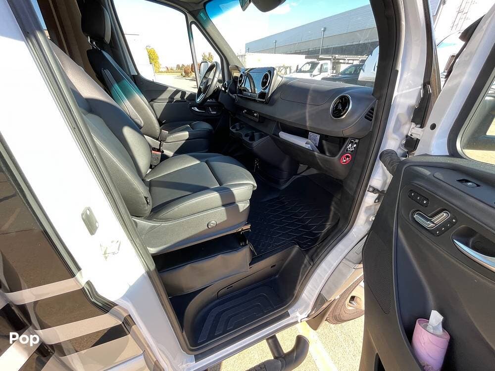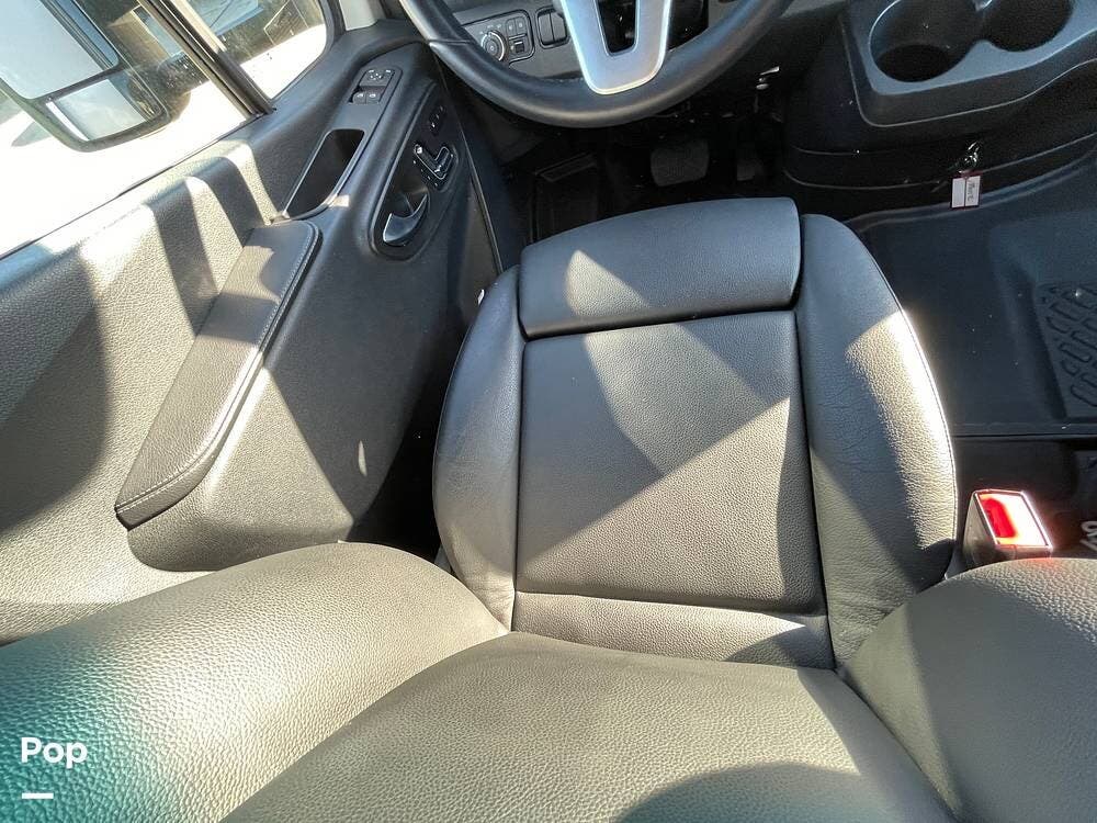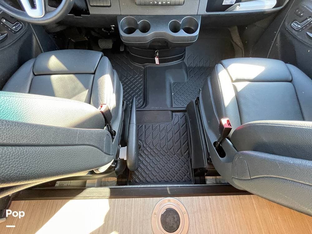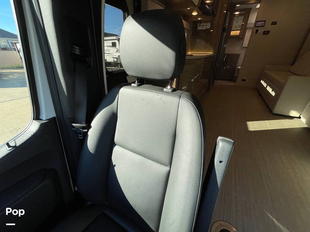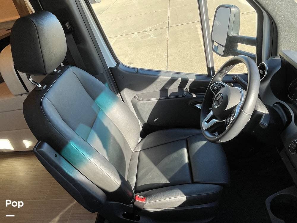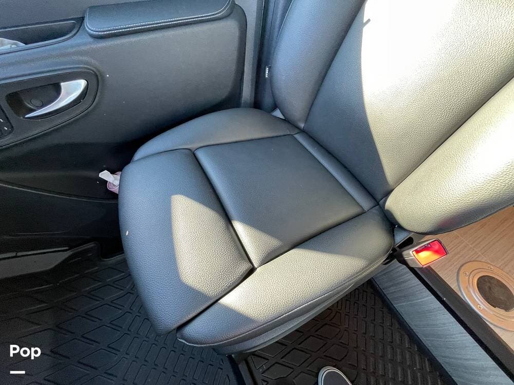 The driver's cab area has a pair of Ultraleather power-adjustable, swivel driver and passenger seats with boosters.