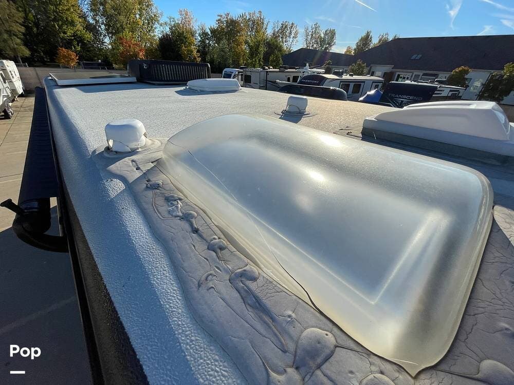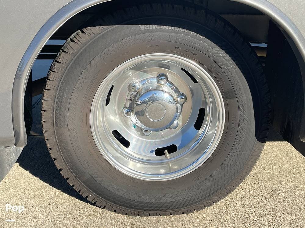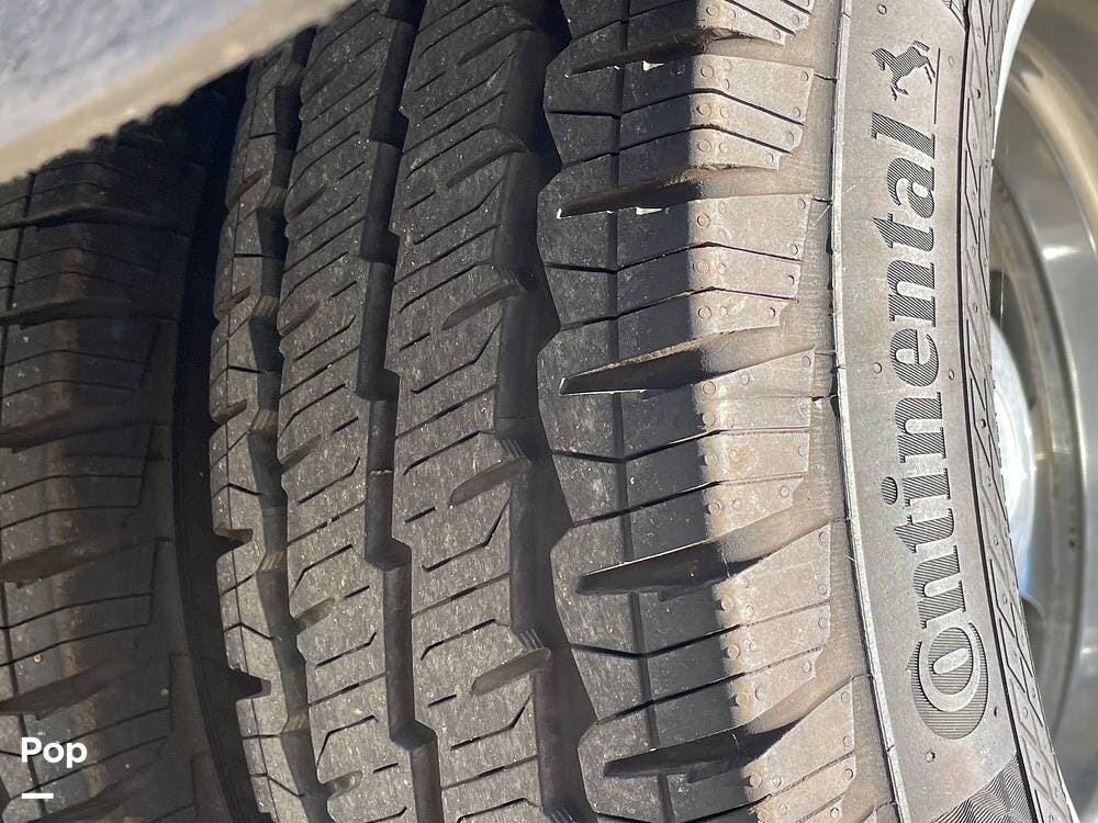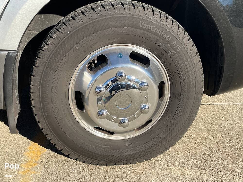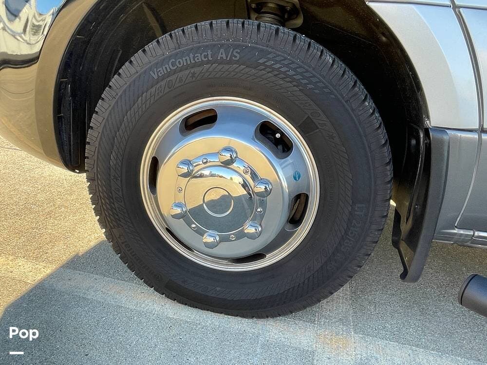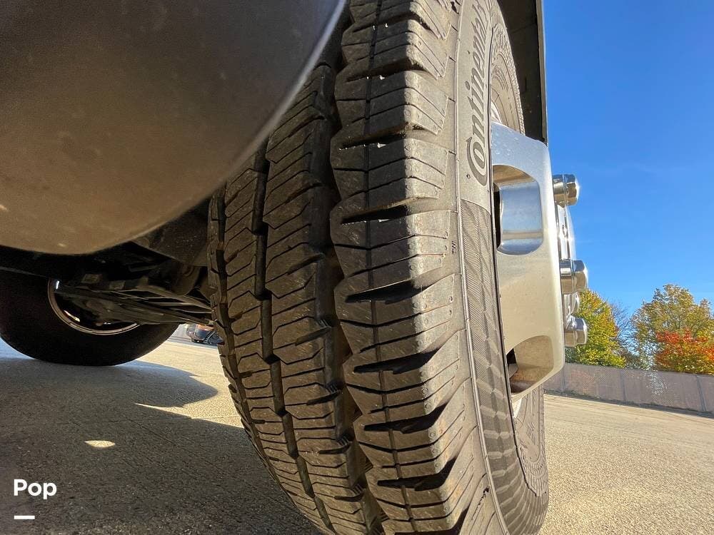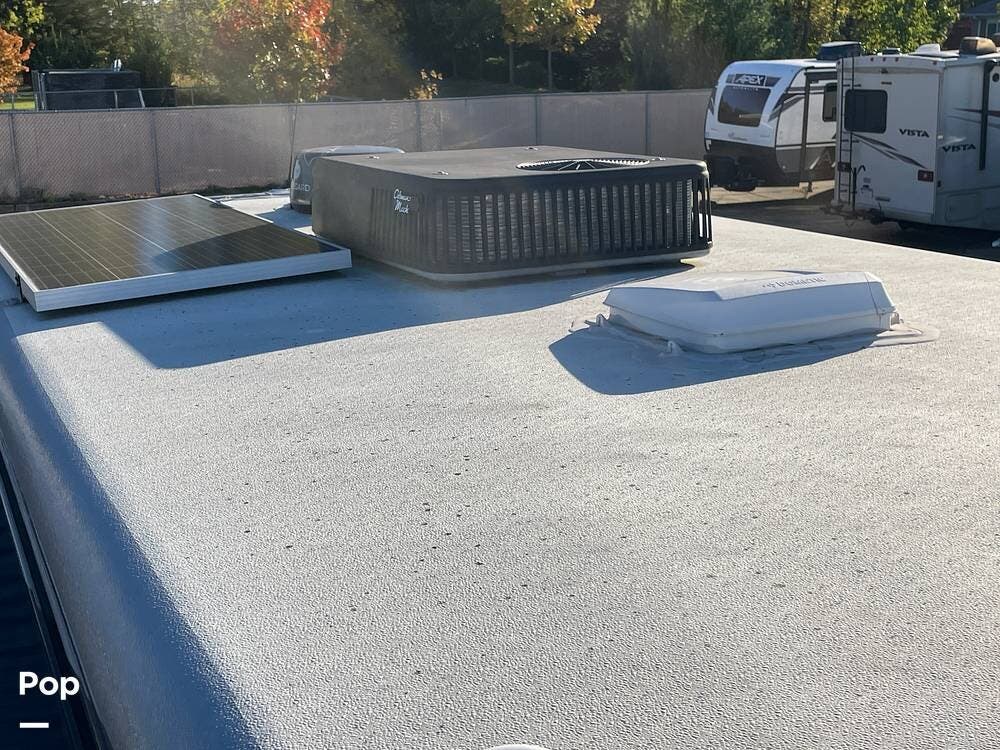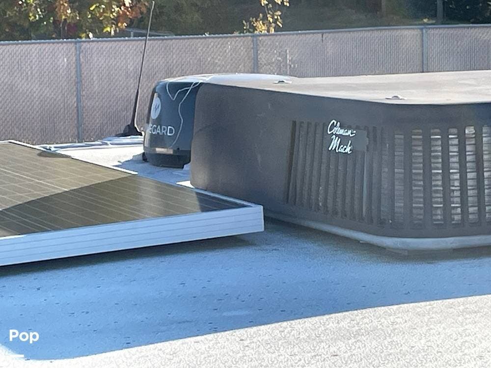 On the roof, you'll find a 190W solar panel with dual controller, a Winegard 2.0 Wi-Fi/4 G antenna, and a 15,000 BTU low-profile air conditioner.