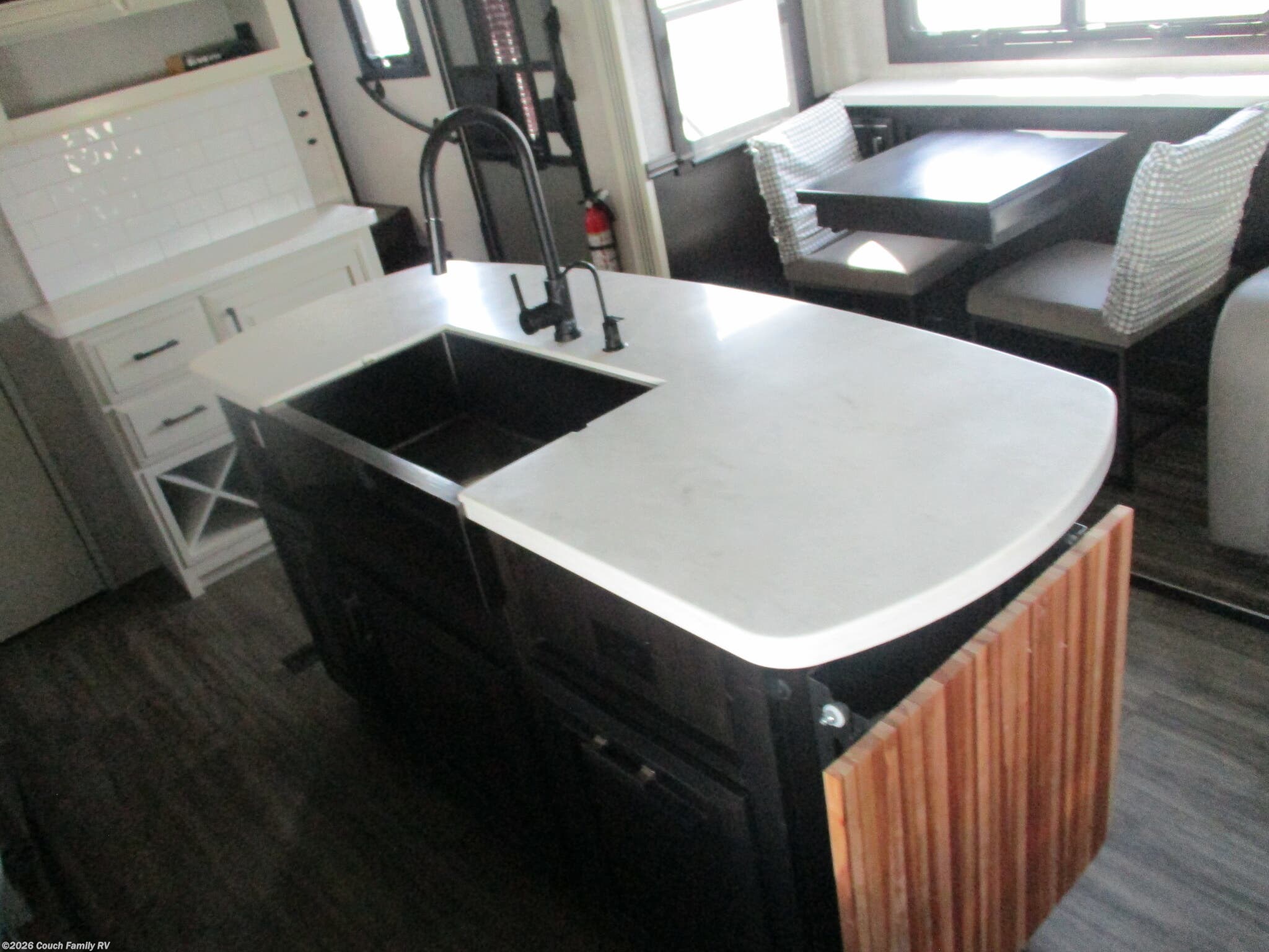 Awning, Black Tank Flush, Griddle, Heated Underbelly, Hitch, Outside Kitchen, Roof Deck, Skylight, Slideout -